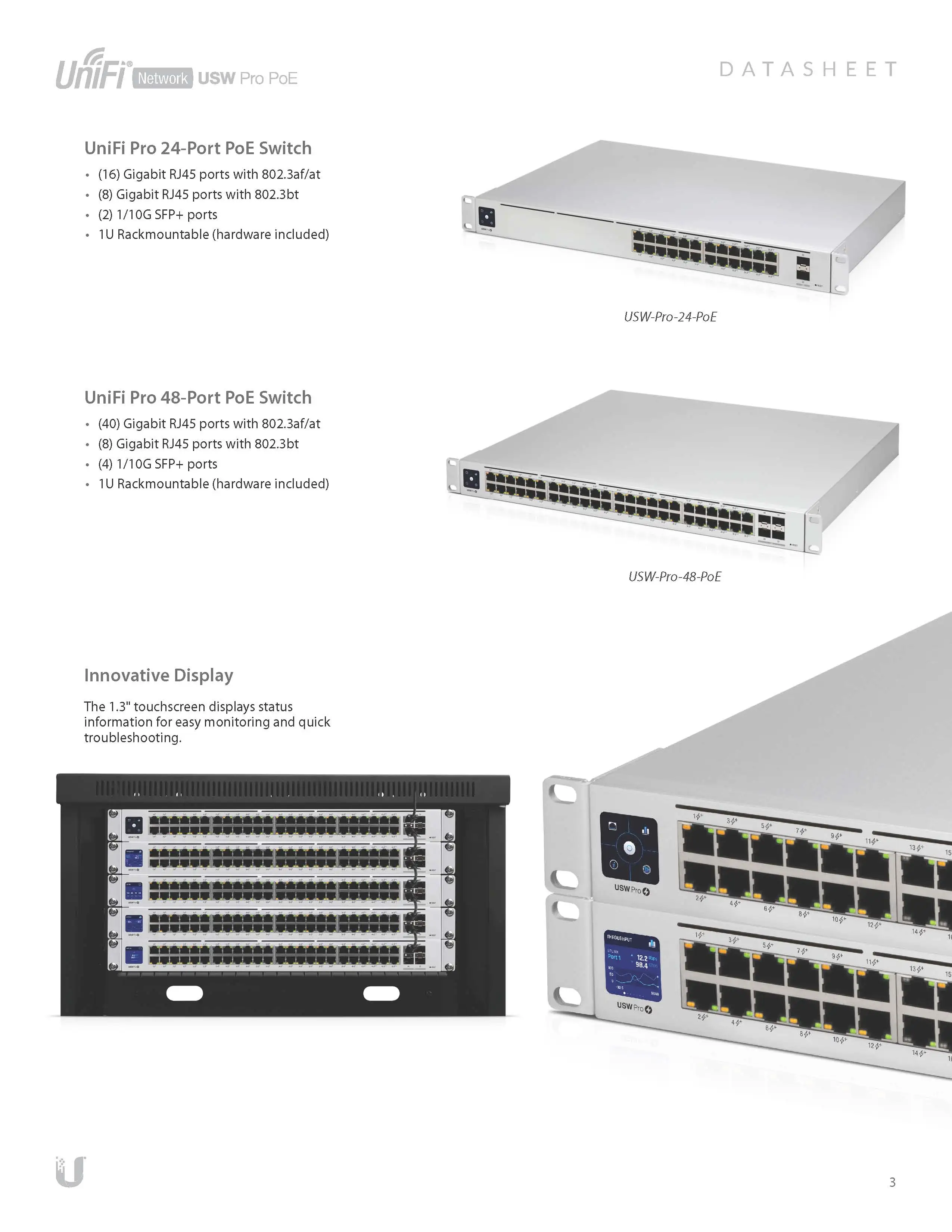 UBIQUITI USW-Pro-48-PoE Layer 3 Switch Pro 48 Port PoE (40 x GbE PoE+, 8 x GbE, PoE++) 600W, 4x10G SFP+ ports, 176 Gbps Capacity