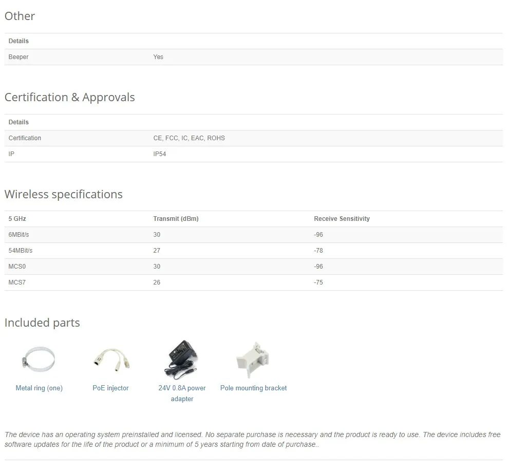 7.5dBi Integrated AP, 5GHz Dual chain, 5xEthernet ports