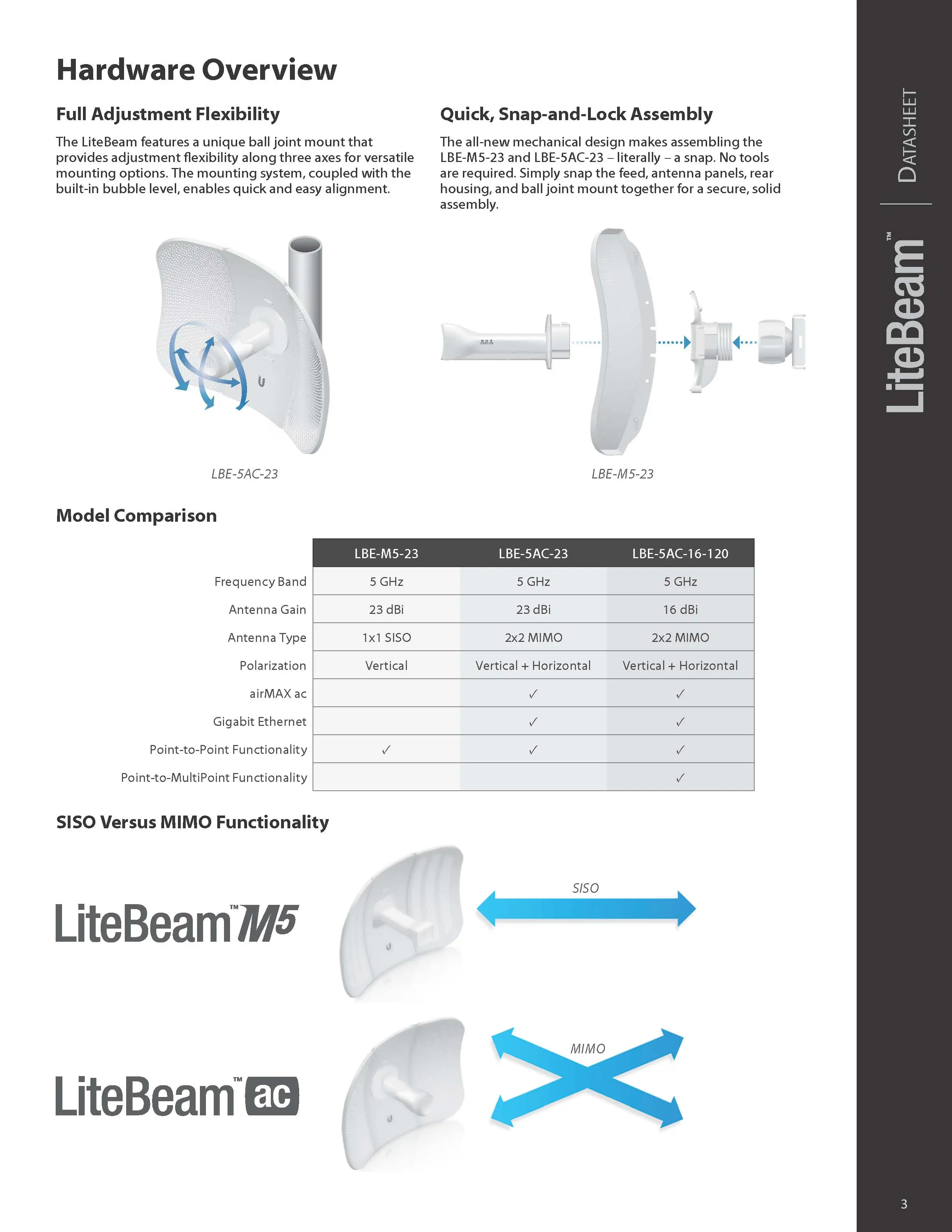 Ubiquiti Networks LBE-M5-23 Point-to-Point for 10KM, Wireless Bridge 5GHz Litebeam M5 23, 23dBi 1x1 SISO Only 1Units