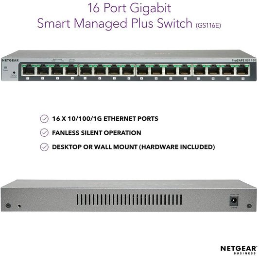 • NETGEAR GS116E 16-Port Gigabit Ethernet Smart Managed Plus Switch, Desktop, and ProSAFE Limited Lifetime Protection - Best WiFi Mall