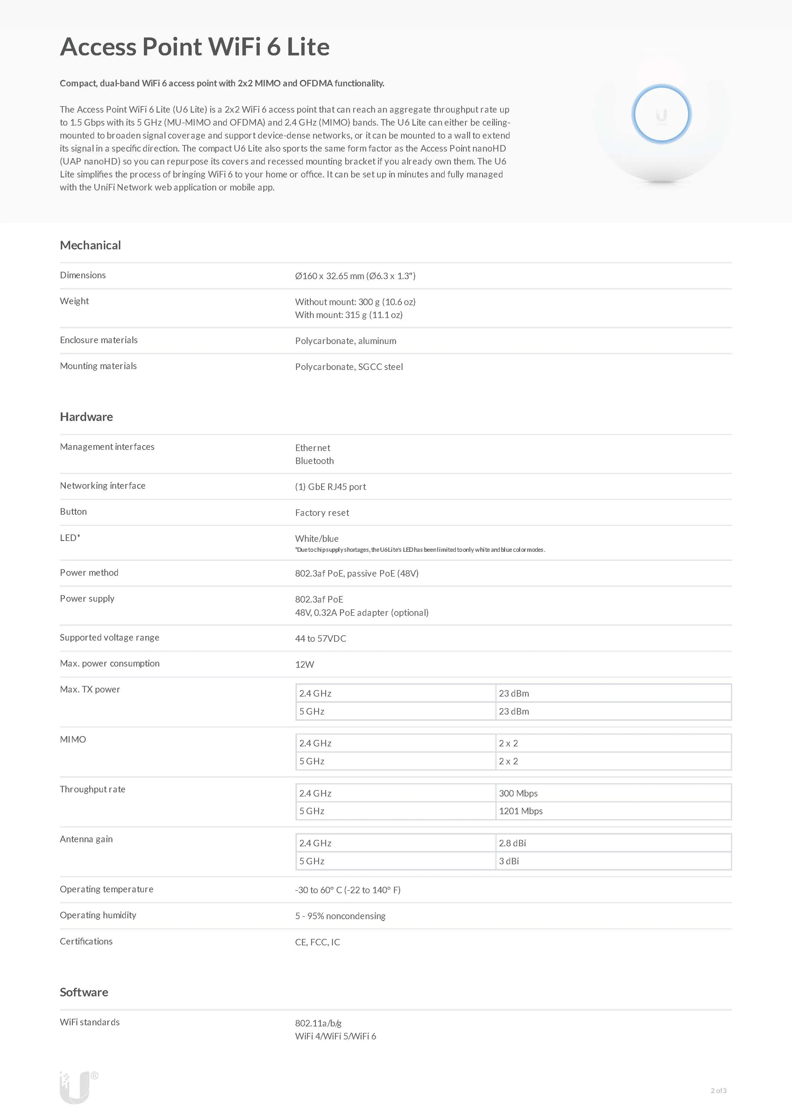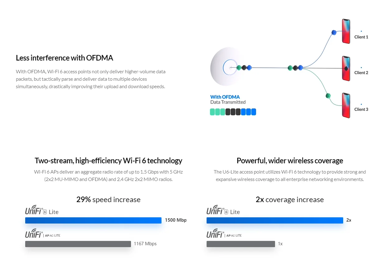 Ubiquiti UniFi U6-Lite U6 Lite Wi-Fi 6 AP Indoor Wireless Access Point 1.5Gbps MU-MIMO OFDMA