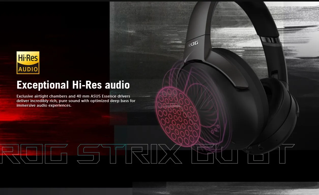 ASUS ROG Strix Go BT wireless gaming headset with Qualcomm Adaptive audio ANC, AI Noise-Canceling Microphone, For PS5, PCs
