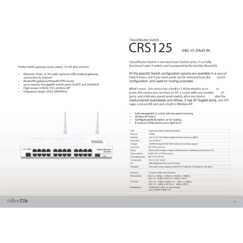 MikroTik CRS125-24G-1S-2HnD-IN Cloud Router Gigabit Switch, Fully Manageable Layer 3, 24x 10/100/1000Mbps
