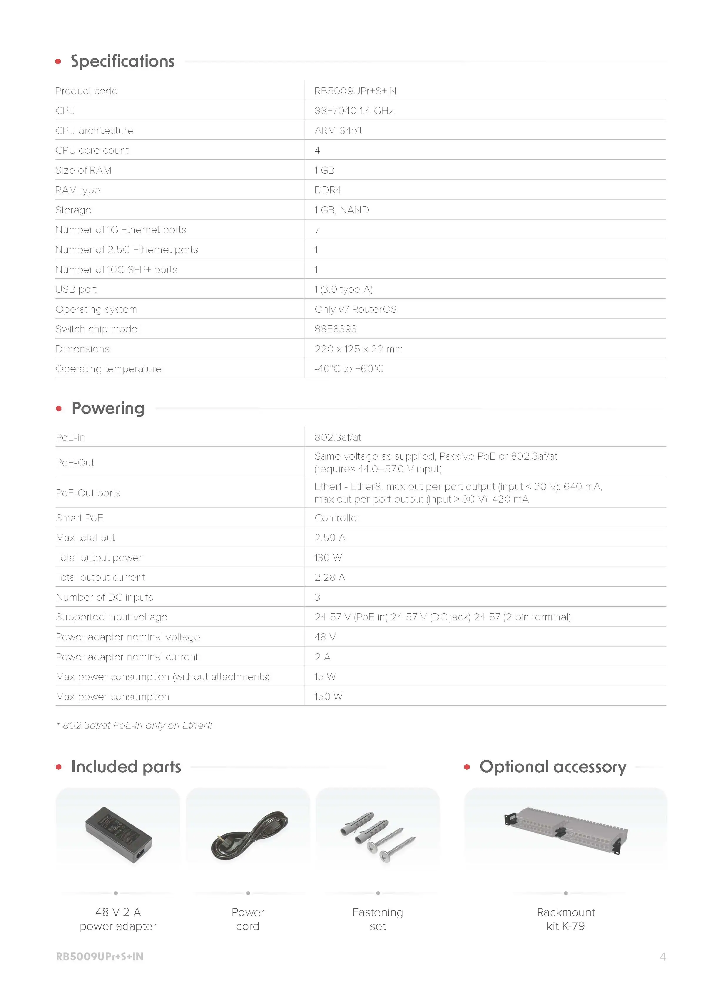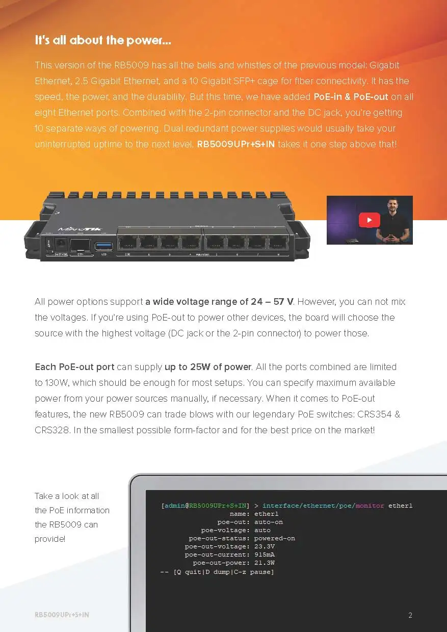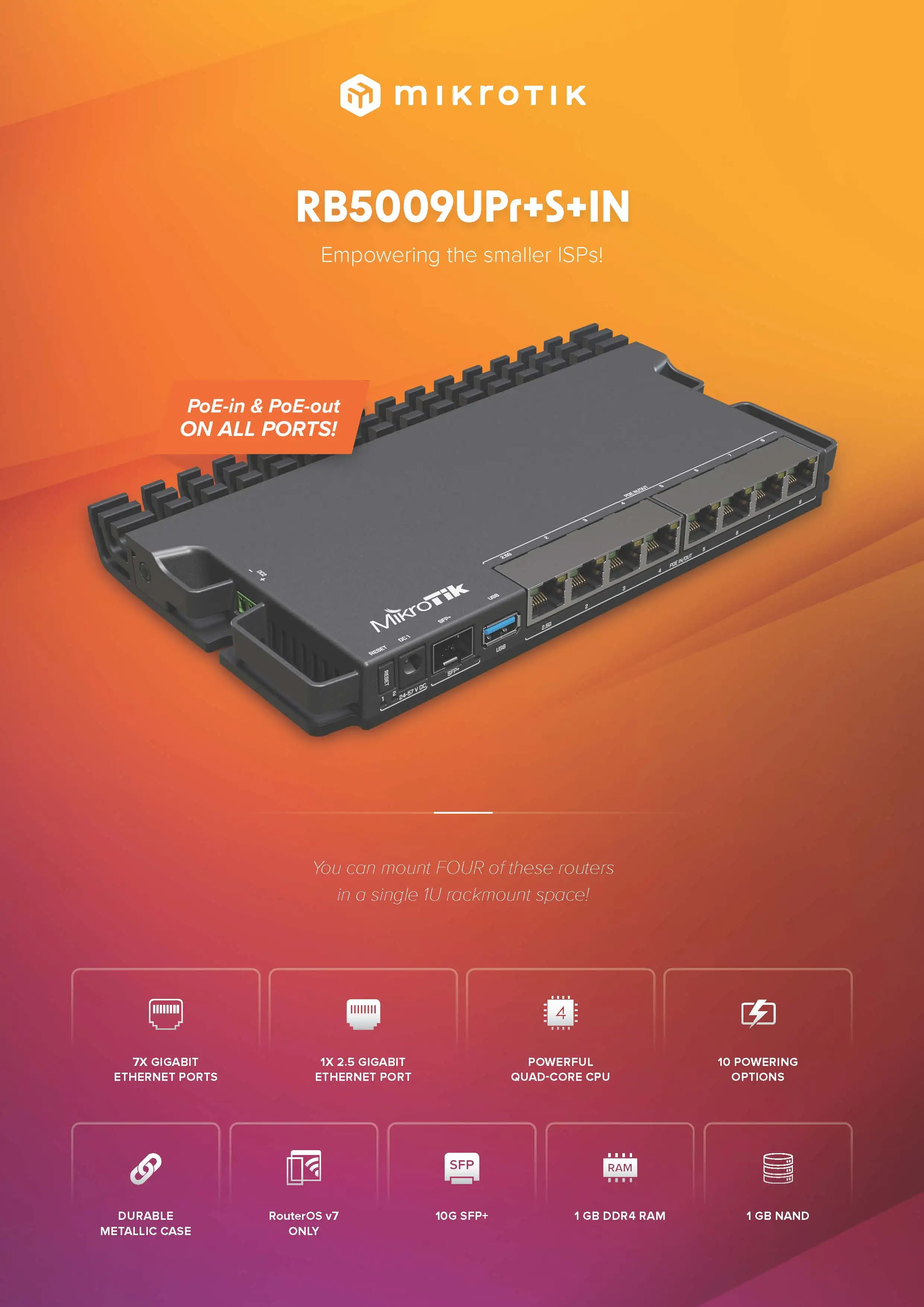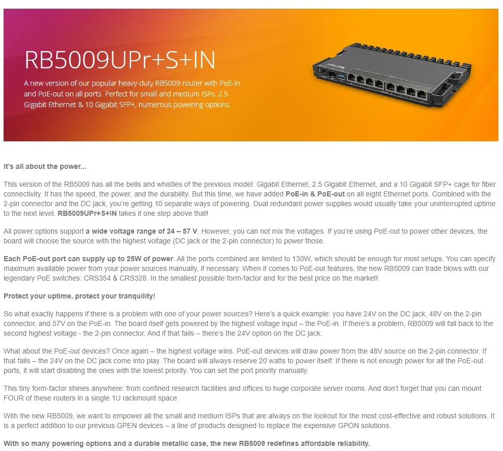 Mikrotik RB5009UPr+S+IN Router RB5009 con PoE-In y PoE-Out en todos los puertos, ISP pequeños y medianos. 2,5/10 Gigabit Ethernet SFP+