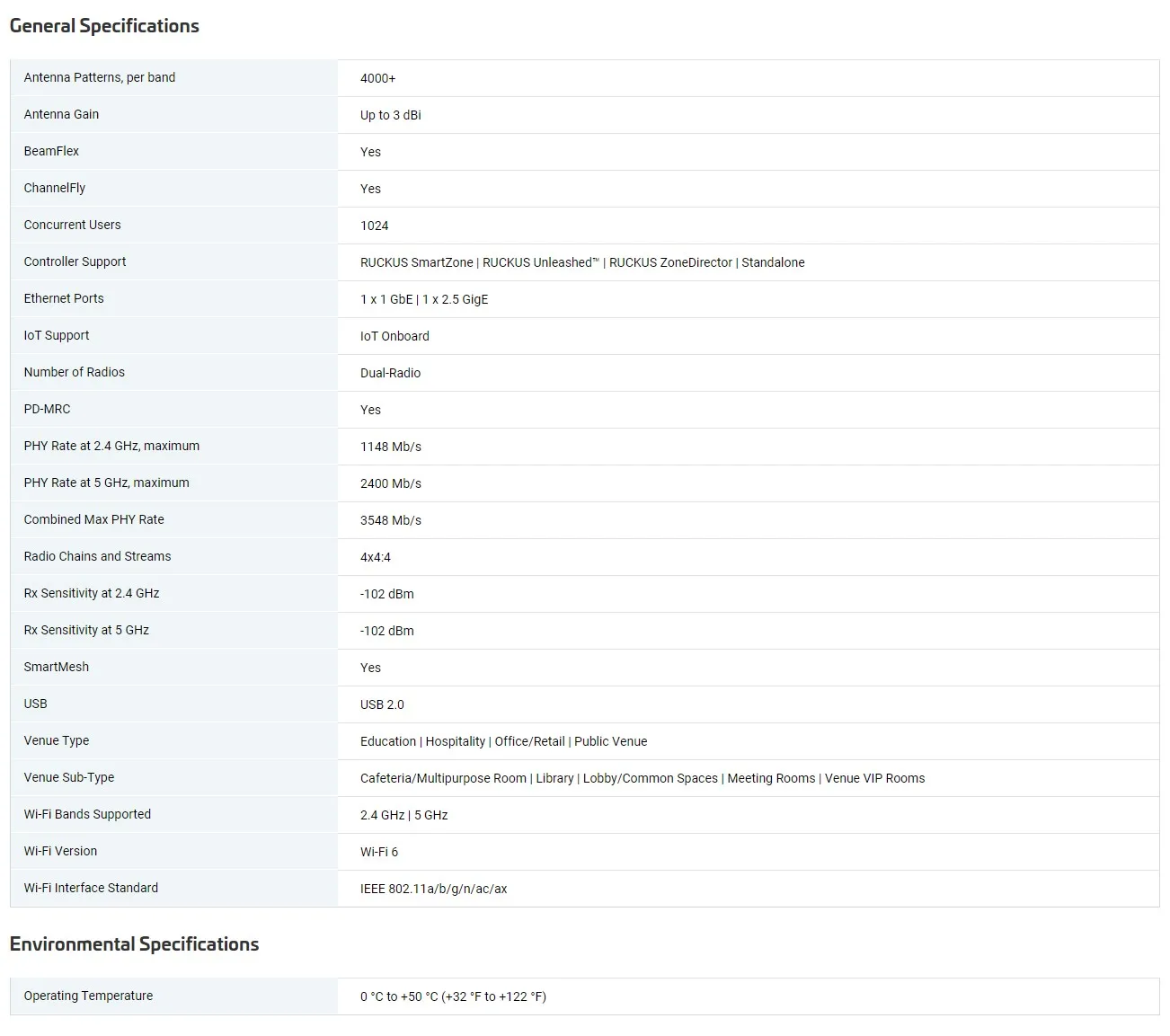 El R750 se basa en el último estándar Wi-Fi 6 y cierra la brecha de rendimiento entre Wi-Fi 'gigabit' y Wi-Fi 'multi-gigabit' para satisfacer la demanda insaciable de Wi-Fi mejor y más rápido. El R750 es el primer AP Wi-Fi 6 al que Wi-Fi Alliance le concede el estatus Wi-Fi CERTIFIED 6. Como parte del banco de pruebas de Wi-Fi Alliance, el R750 valida otros dispositivos para la certificación de interoperabilidad Wi-Fi CERTIFIED 6.
