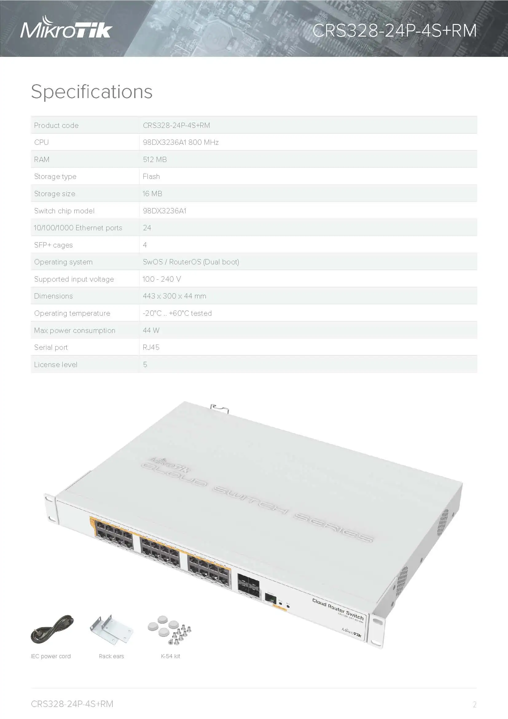 Mikrotik CRS328-24P-4S+RM 24 Port Gigabit Ethernet Router / PoE Switch with 4x 10Gbps SFP+ Ports in 1U Rackmount Case