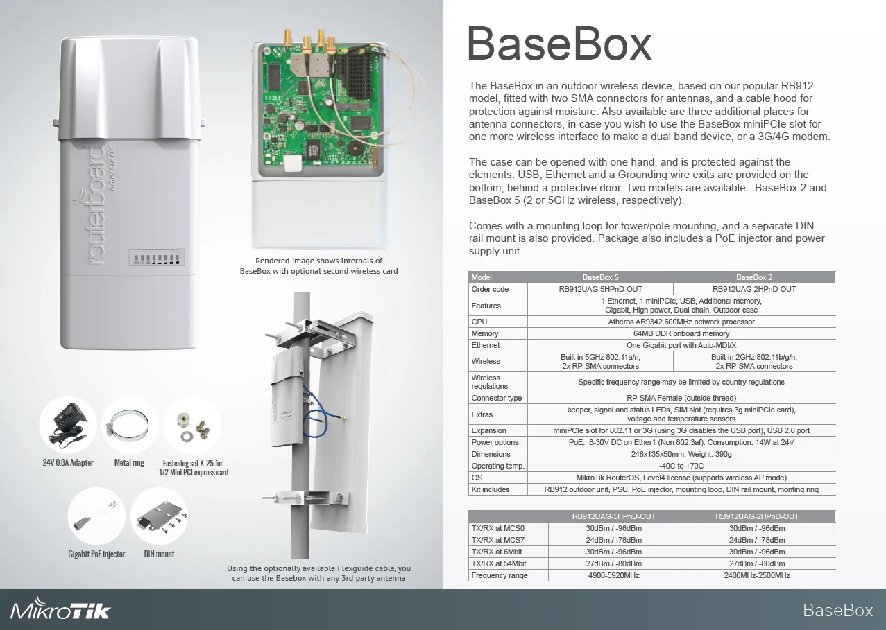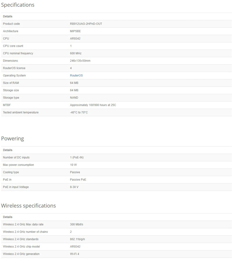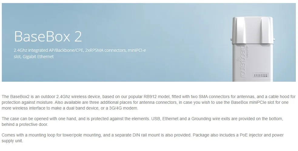 MikroTik RB912UAG-2HPnD-OUT Outdoor Wireless Bridge Access Point, 2.4Ghz integrated AP/Backbone/CPE, 2xRPSMA connectors, 300Mbps
