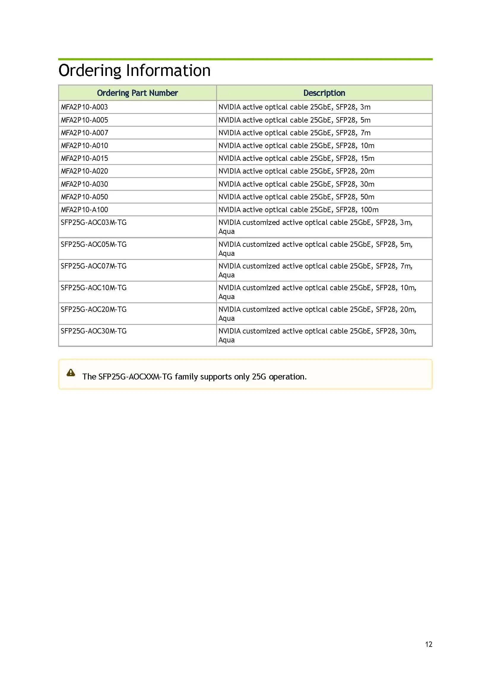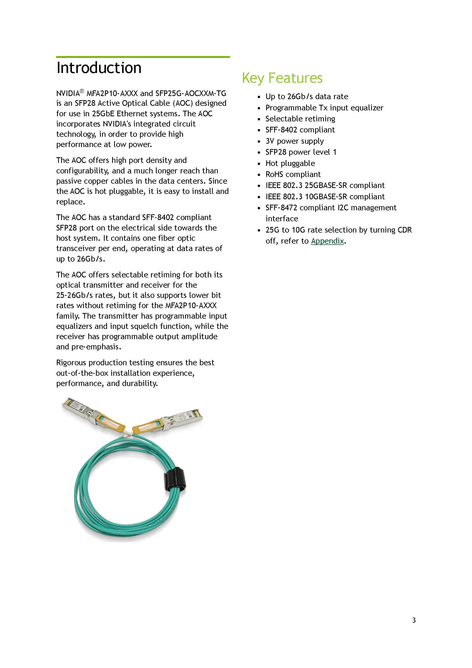 NVIDIA Mellanox SFP28 MFA2P10-AXXX MFA2P10-A003 MFA2P10-A005 25GbE Active Optical Cable
