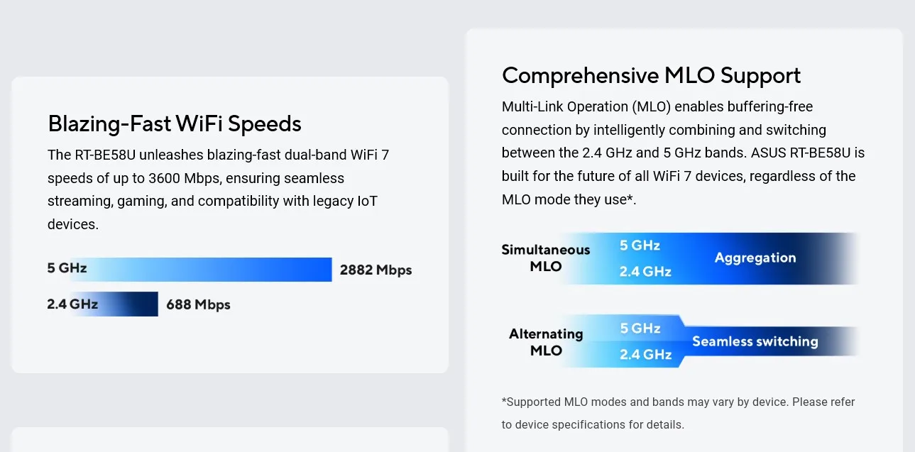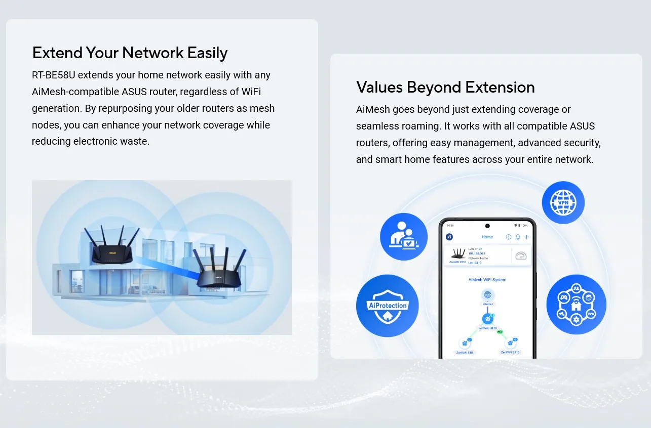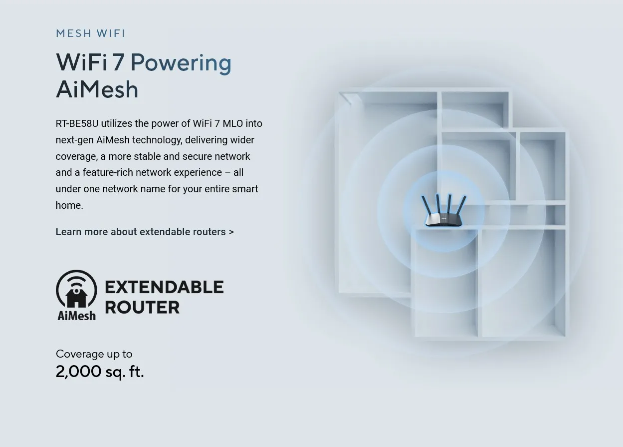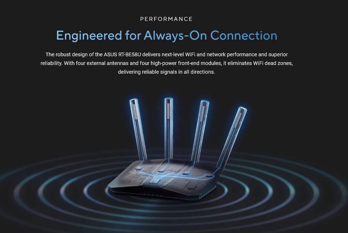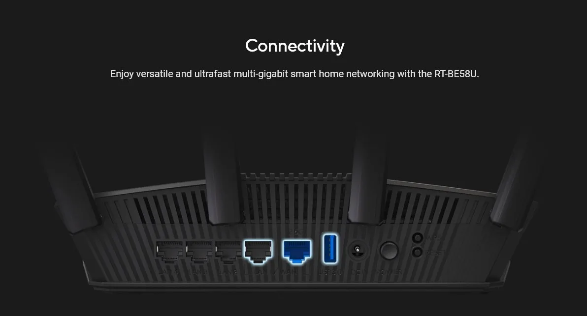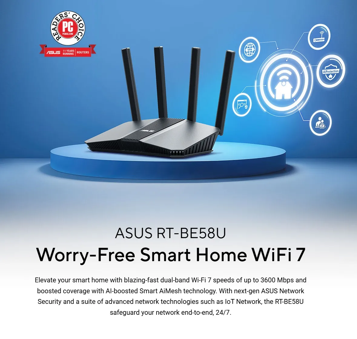 ASUS RT-BE58U BE3600 3600Mbps Dual-Band Wi-Fi 7 Router Coverage 2,000sq.ft. AI-boosted 160MHz Smart AiMesh 4K-QAM IoT VPN
