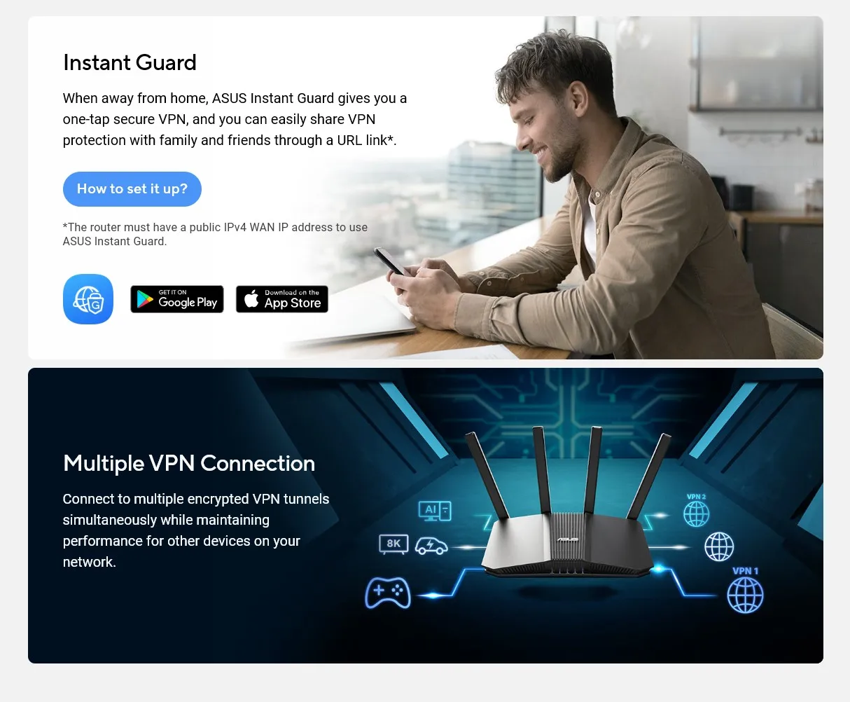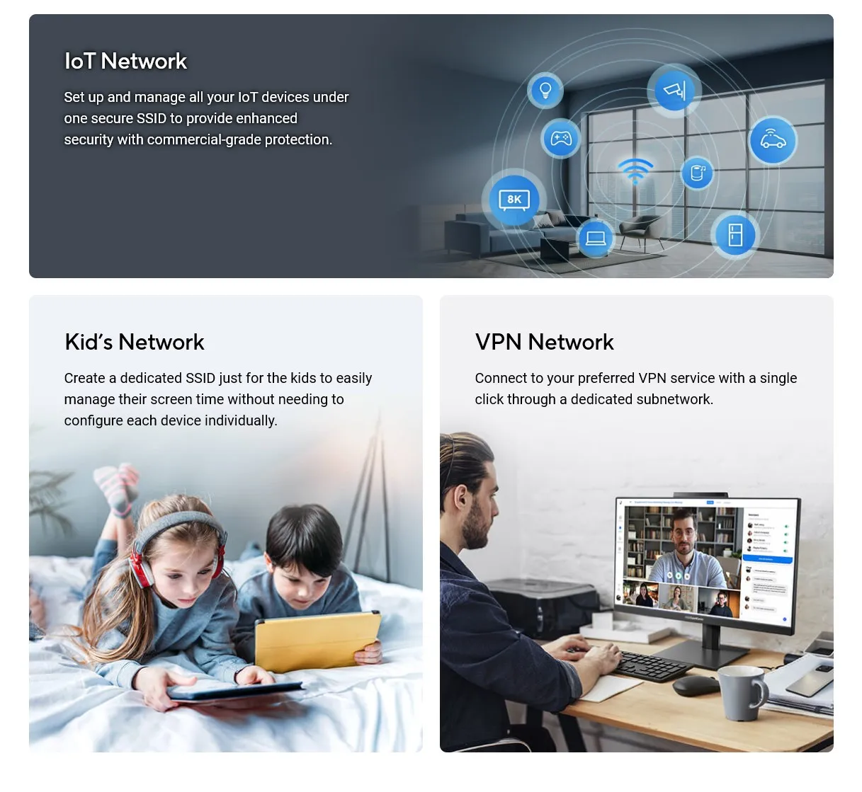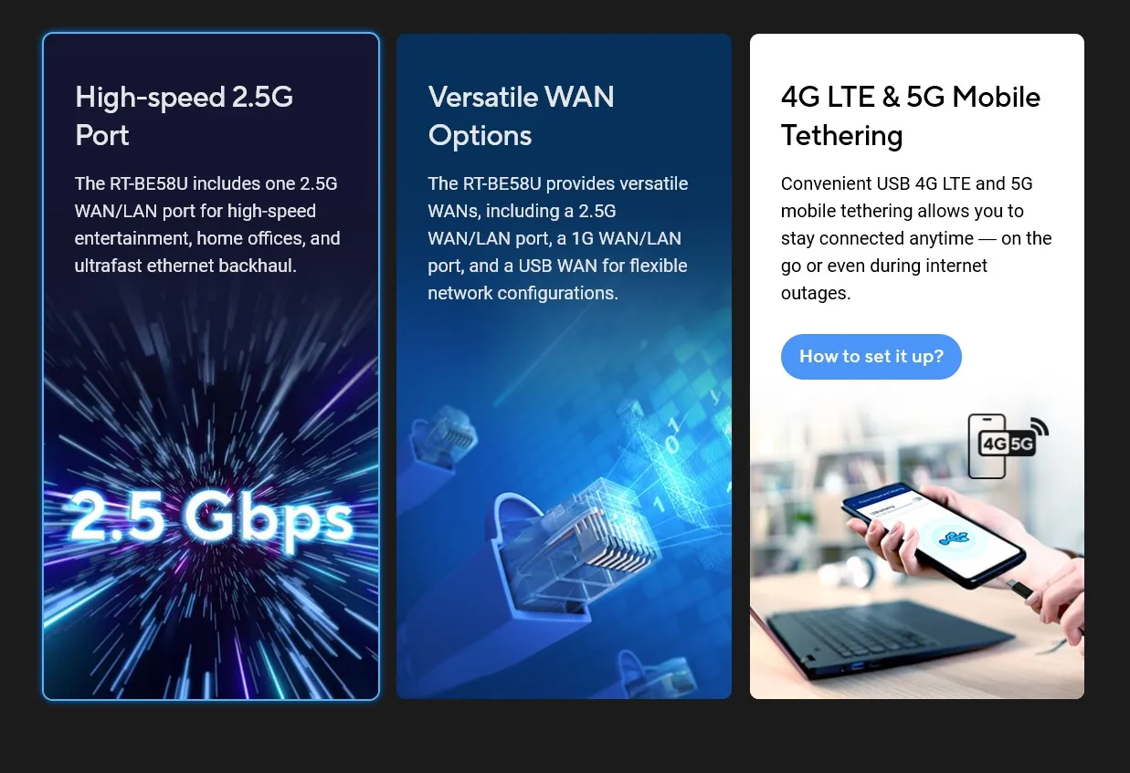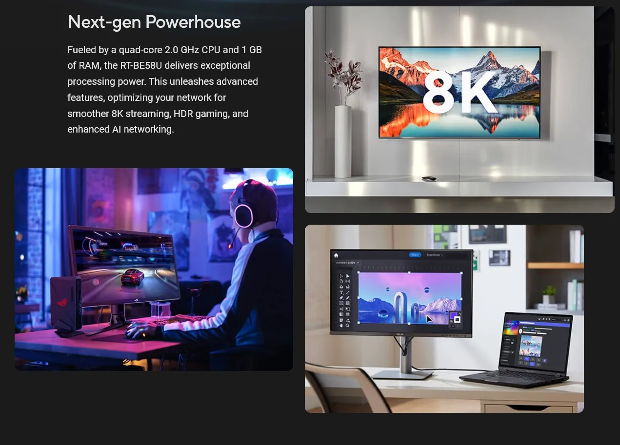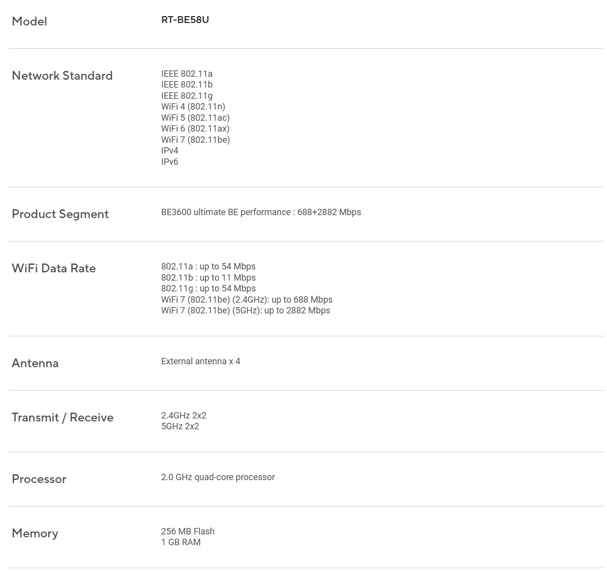 ASUS RT-BE58U BE3600 3600Mbps Dual-Band Wi-Fi 7 Router Coverage 2,000sq.ft. AI-boosted 160MHz Smart AiMesh 4K-QAM IoT VPN