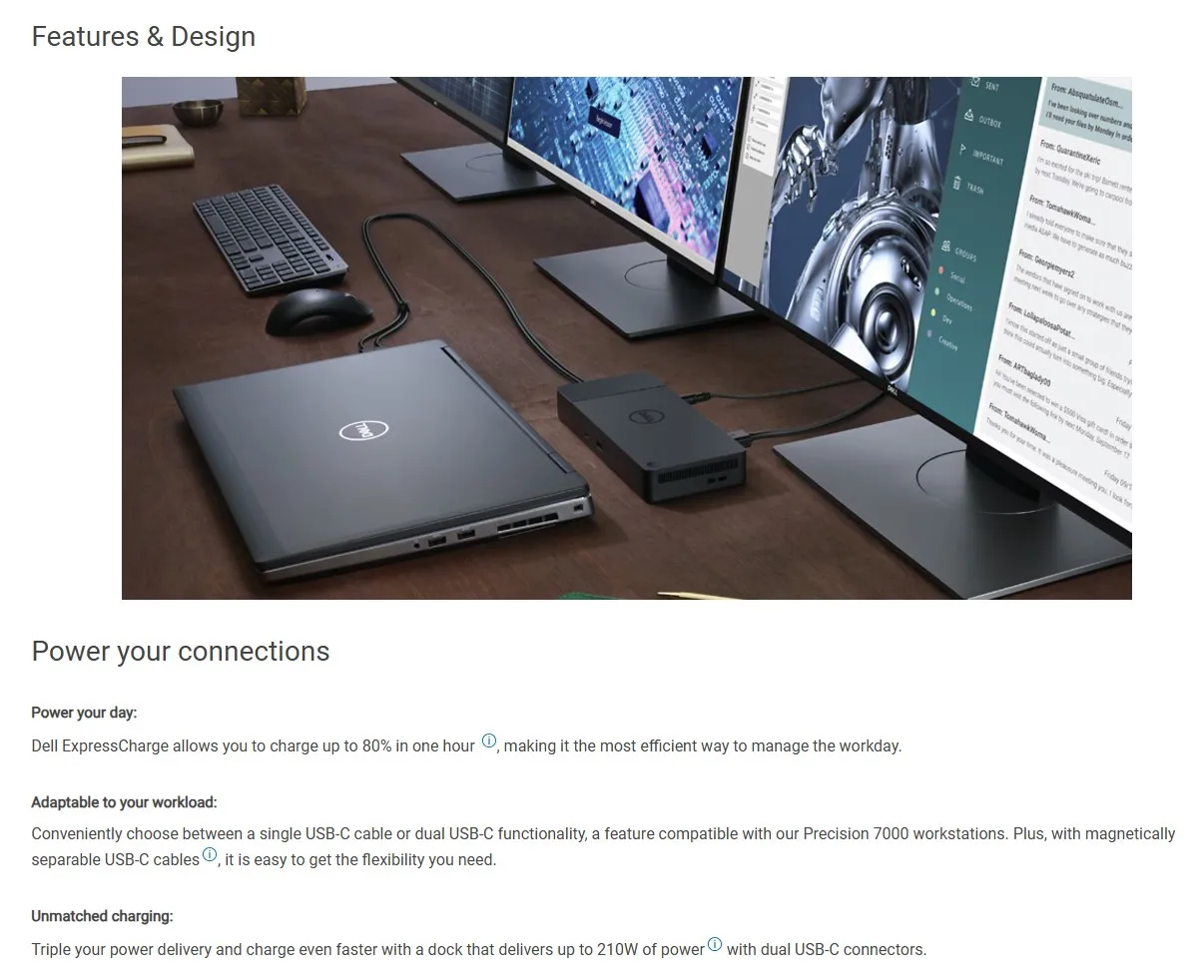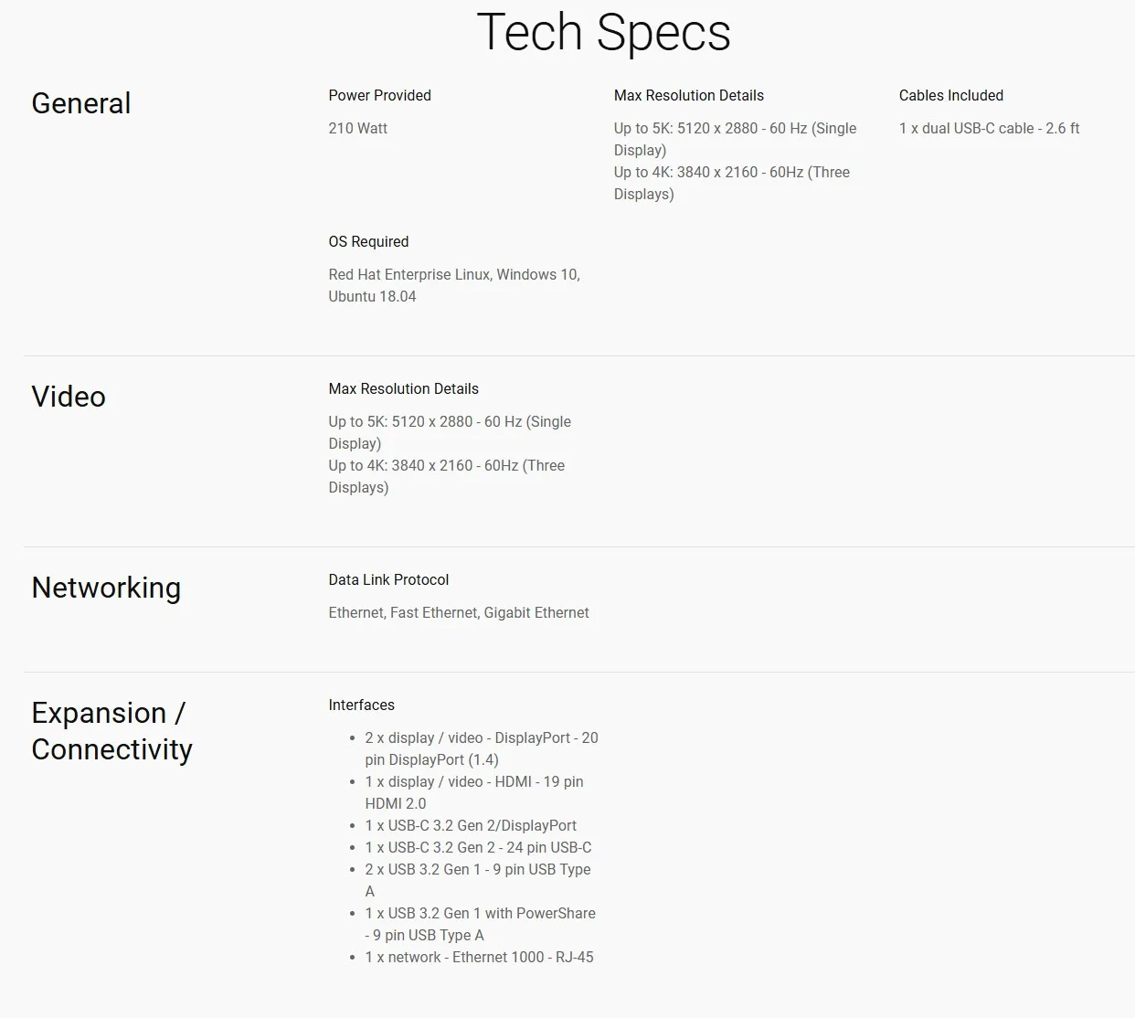 Dell Performance Dock WD19DCS Docking Station with 210W Power Adapter + HDMI Cable + Display Port Cable