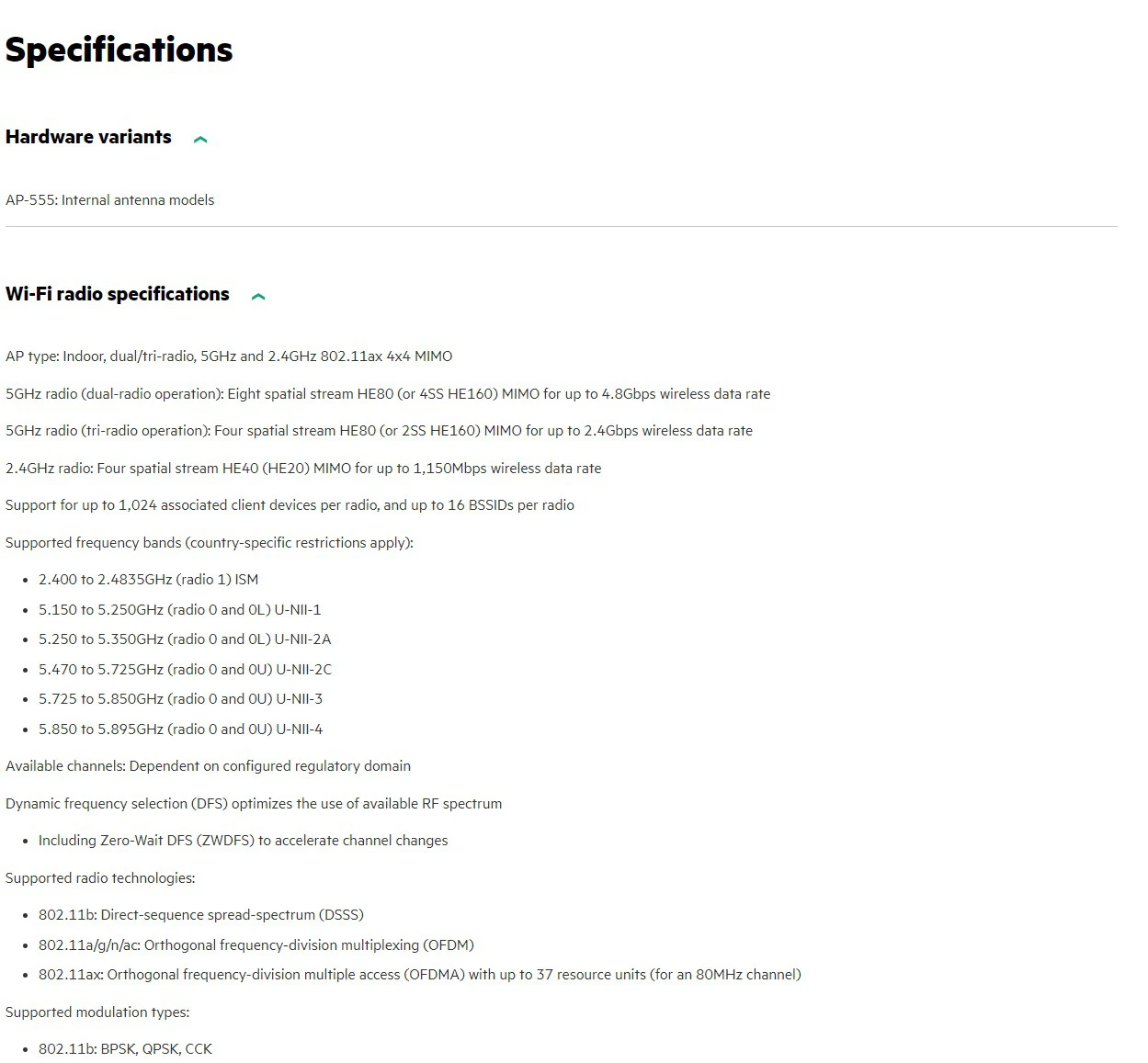ARUBA Networks APIN0555 AP-555 / IAP-555(RW) Indoor Wireless Access Point Wi-Fi 6 802.11ax OFDMA U-MIMO 5.37 Gbps, Support WP3