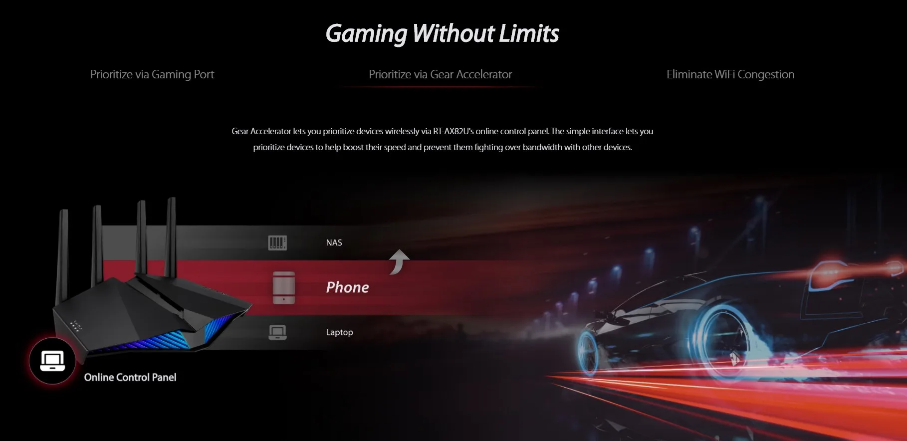 ASUS RT-AX82U ROG Gaming Wi-Fi Router AX5400 Dual-Band WiFi 6 Game Acceleration Mesh WiFi MU-MIMO, Mobile Game Boost, Streaming,Gaming