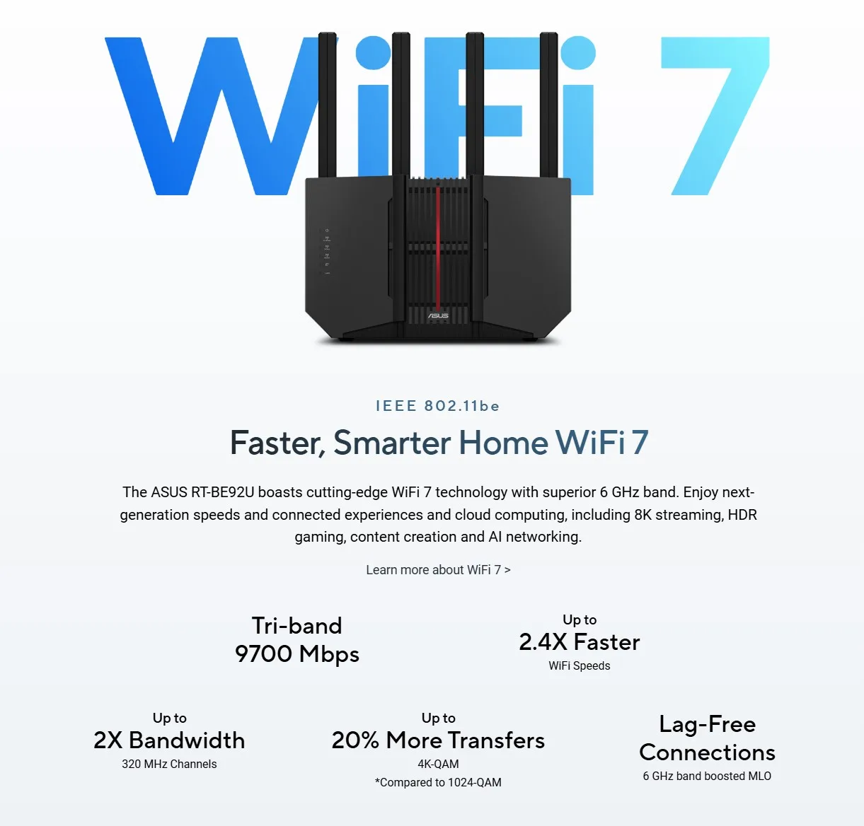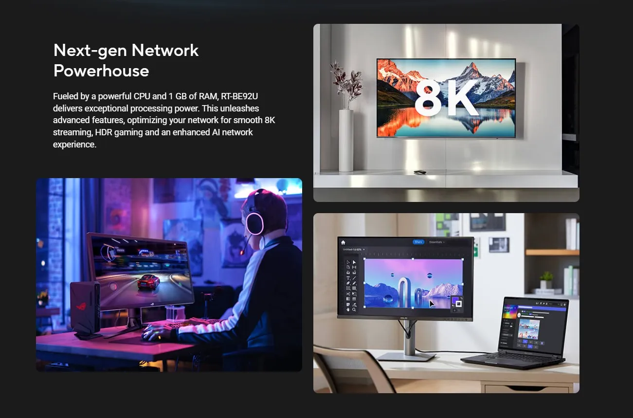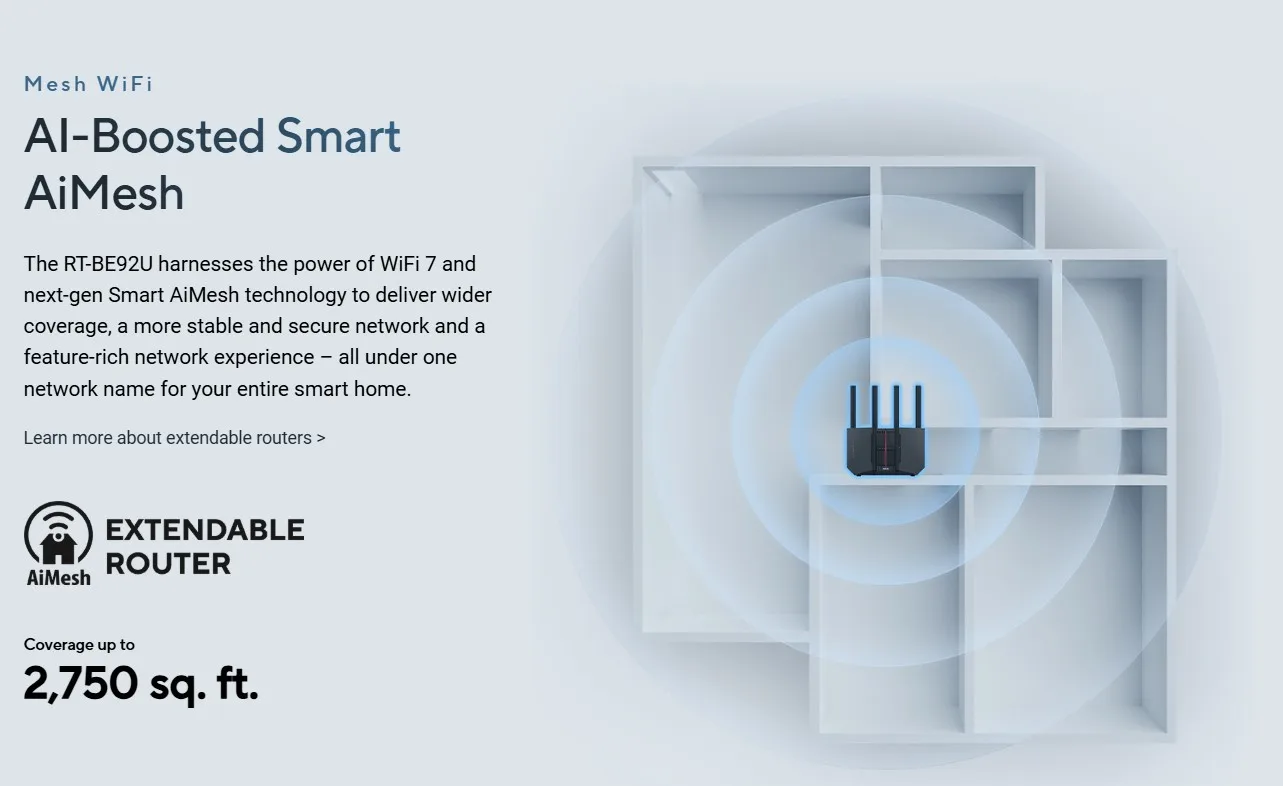 ASUS RT-BE92U Wi-Fi 7 Router Next-Level Smart Home WiFi 7, 9700 Mbps BE9700 Smart AiMesh 2.4X Faster 320 MHz Channels 2,750sq.ft