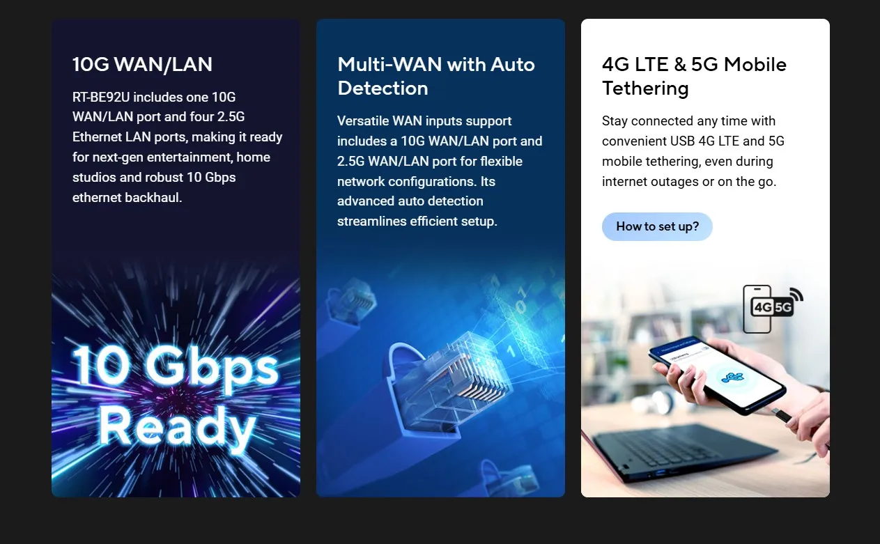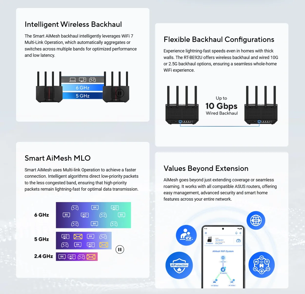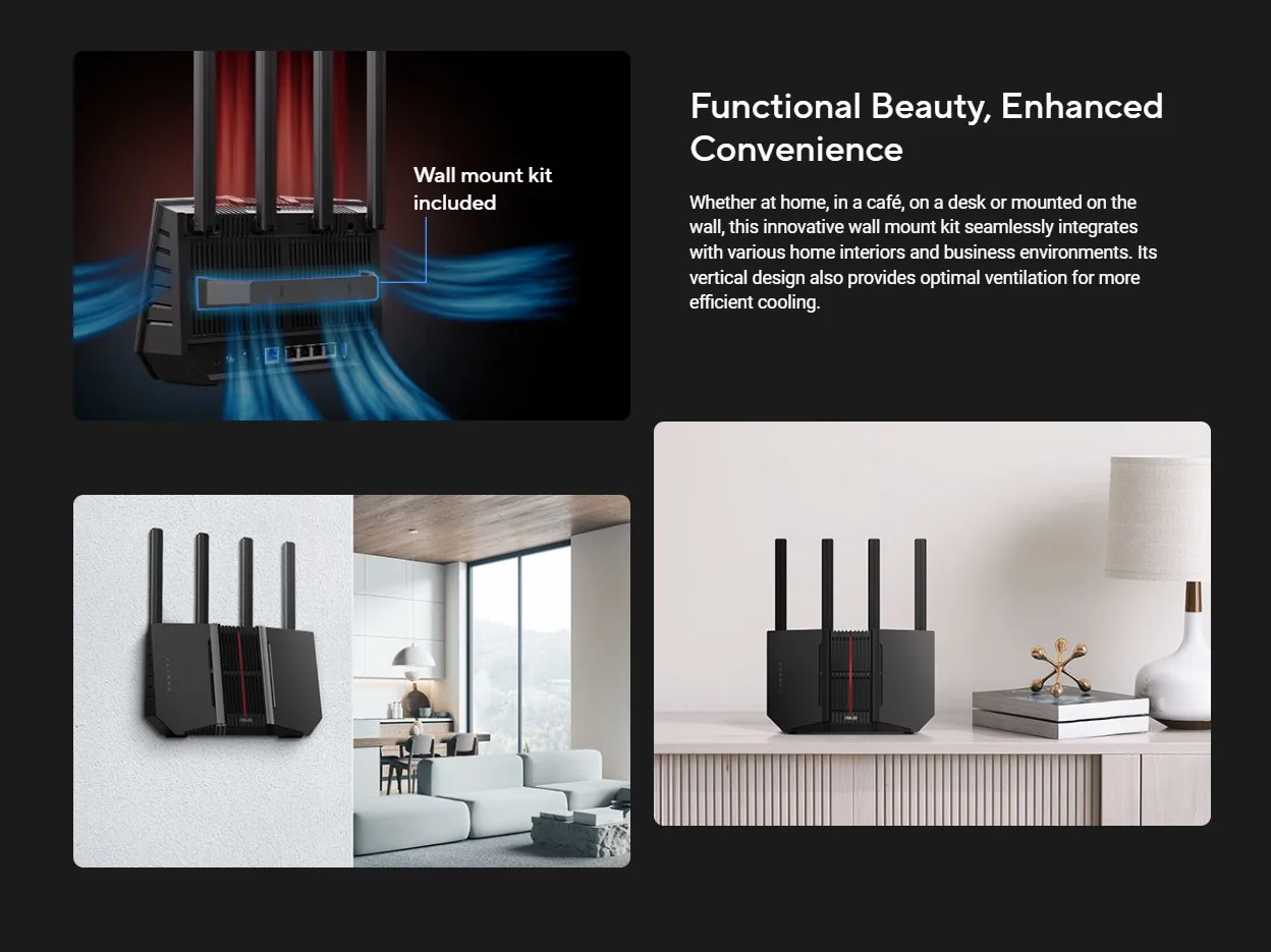 ASUS RT-BE92U Wi-Fi 7 Router Next-Level Smart Home WiFi 7, 9700 Mbps BE9700 Smart AiMesh 2.4X Faster 320 MHz Channels 2,750sq.ft
