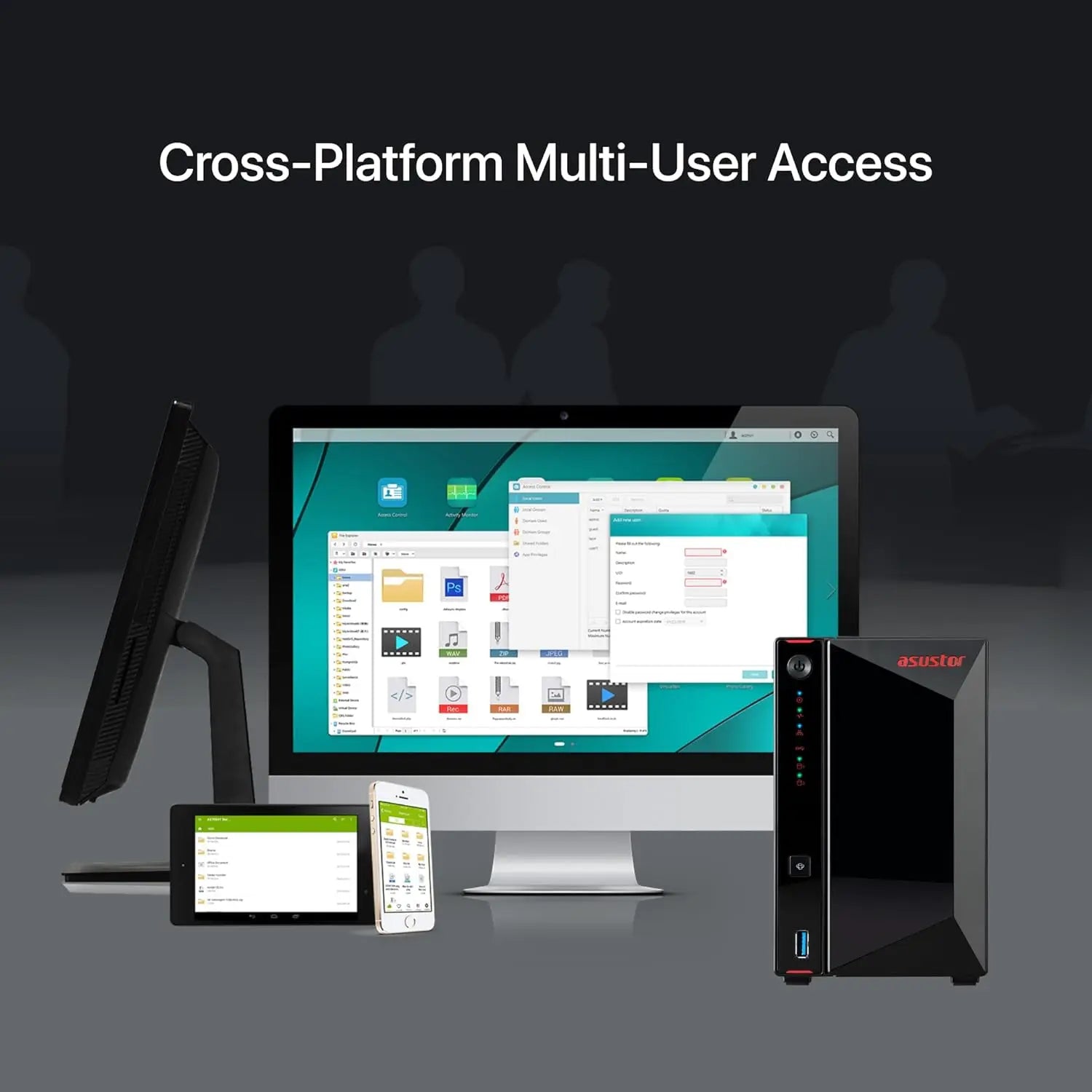 The ASUSTOR NAS provides seamless cross-platform and multi-user access, allowing you to easily connect to your NAS from Windows, macOS or Unix-like operating systems no matter if you are using a PC, notebook, tablet or smartphone.