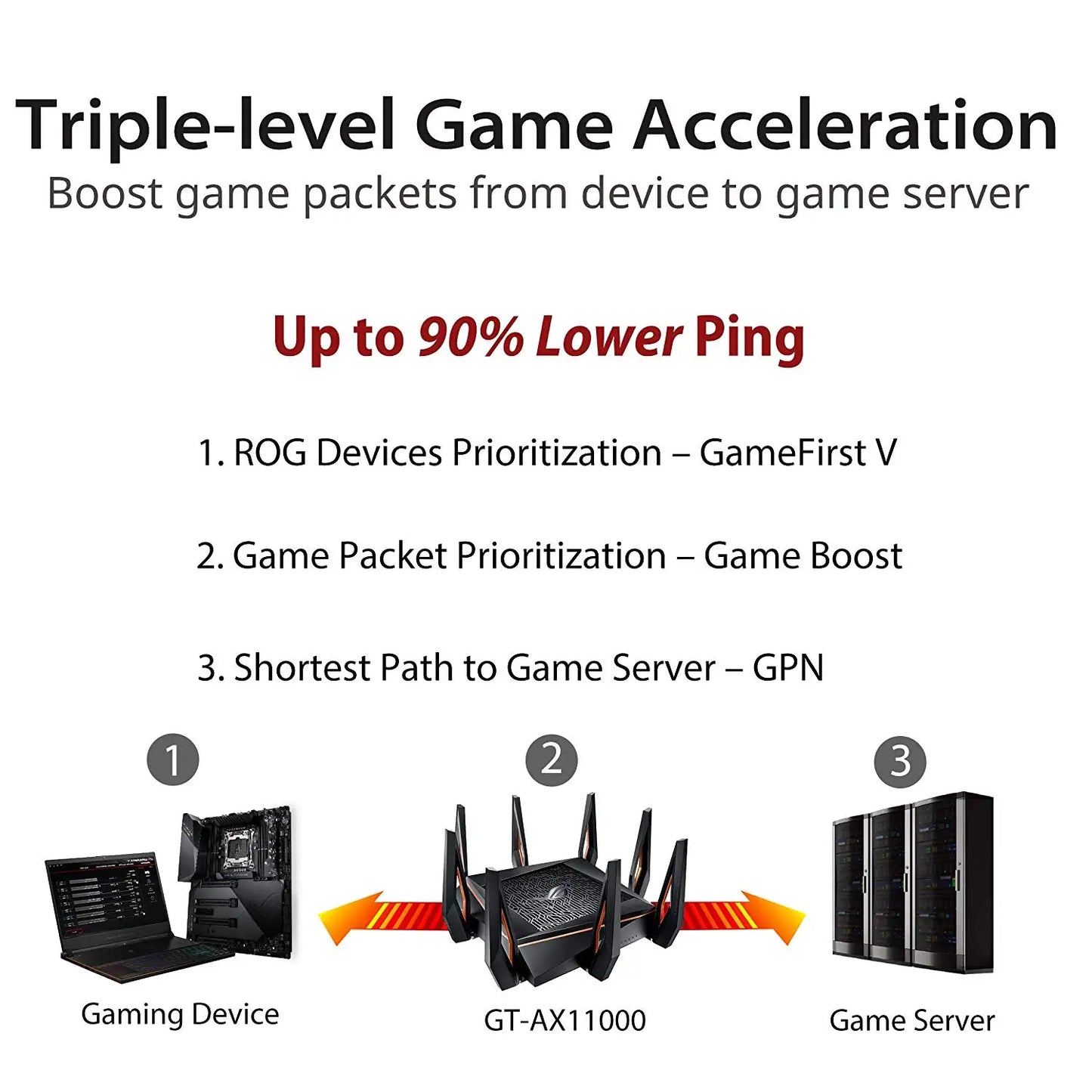 ASUS GT-AX11000 Tri-band Wi-Fi Gaming Router World's First 10 Gigabit With Quad-Core Processor 2.5G Gaming Port DFS WiFi 6
