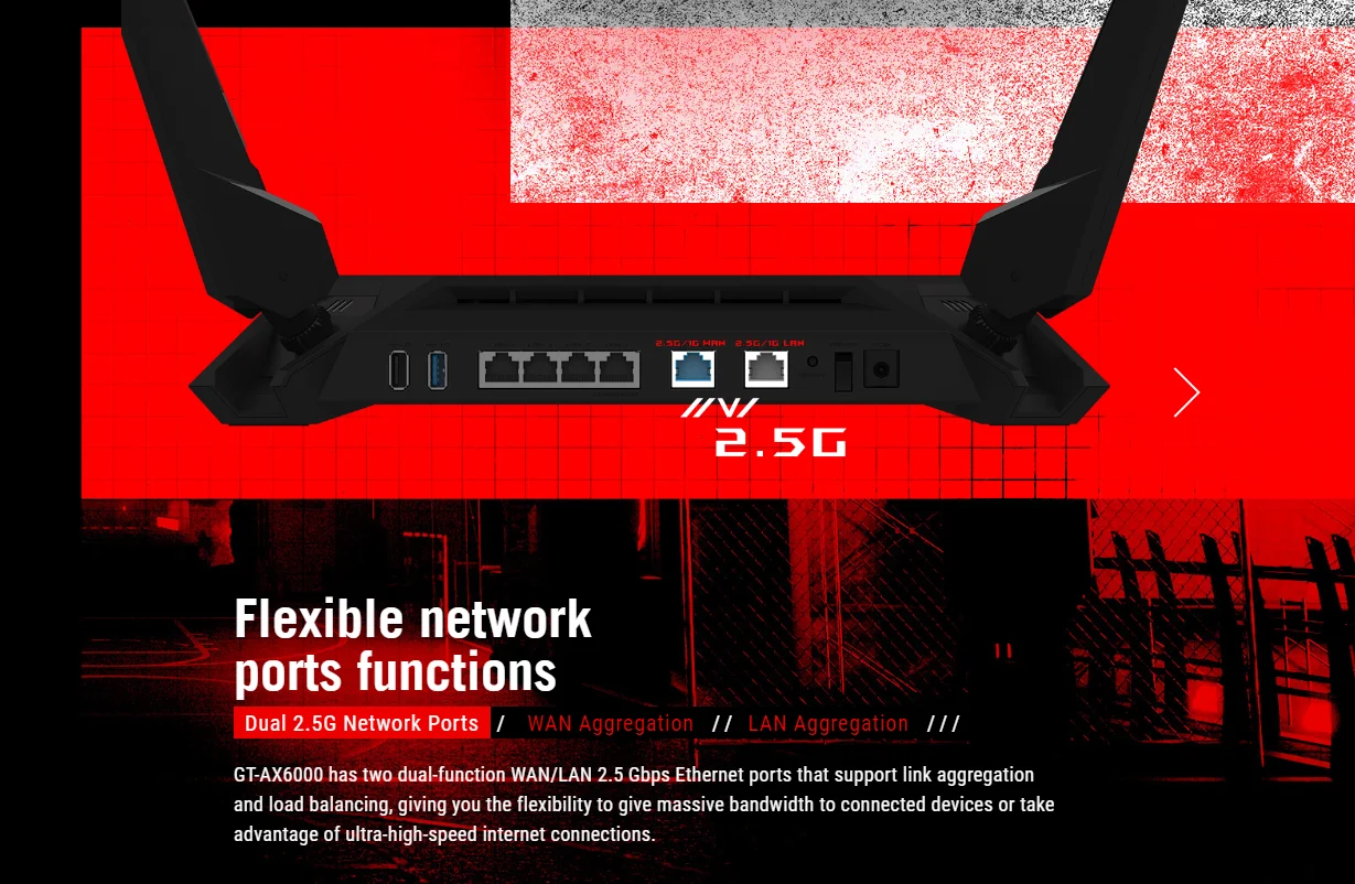 ASUS GT-AX6000 ROG Rapture Gaming WiFi Router AiMesh Router Dual-Band Wi-Fi 6 802.11AX 6000 Mbps WAN/LAN Dual 2.5G Network Ports