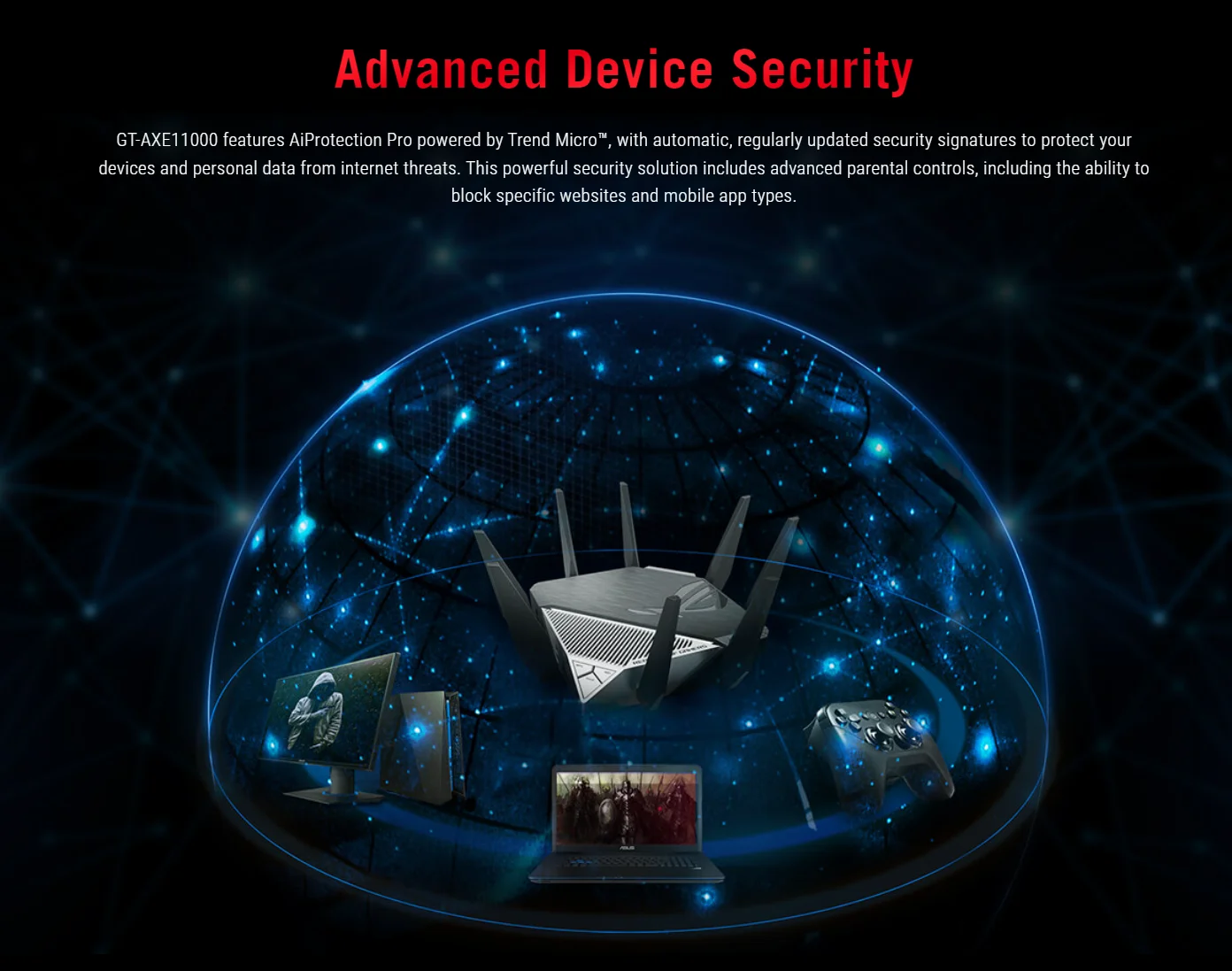 ASUS GT-AXE11000 ROG Rapture Tri-Band WiFi 6E 802.11AX Gaming Router New 6GHz Band, 2.5G WAN/LAN Port, PS5 Compatible VPN Fusion