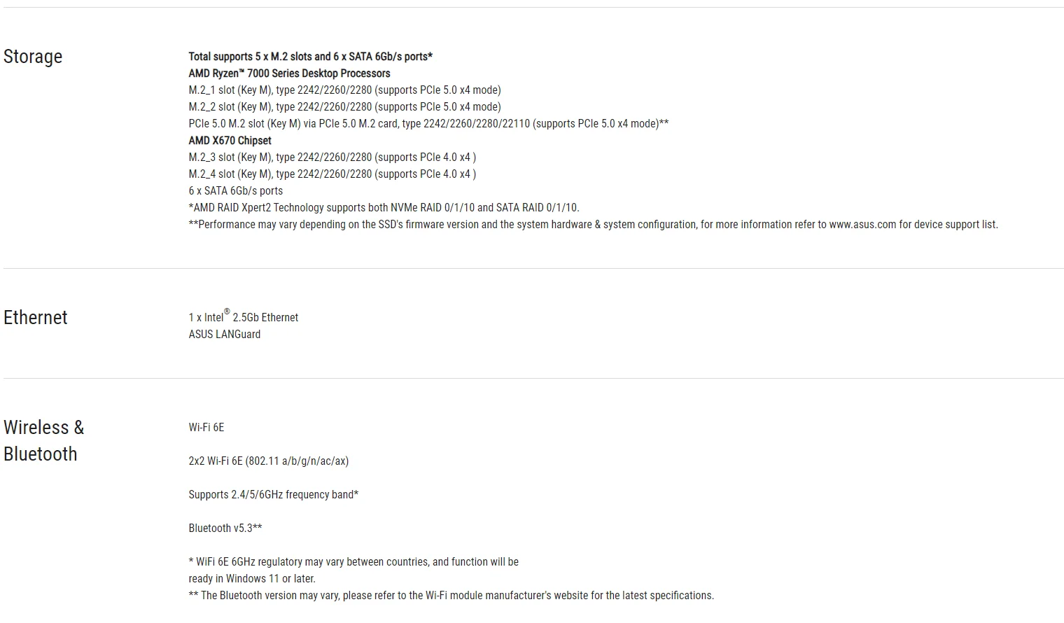 High-Performance Networking: Onboard Wi-Fi 6E, Intel 2.5 Gb Ethernet, and ASUS LANGuard.