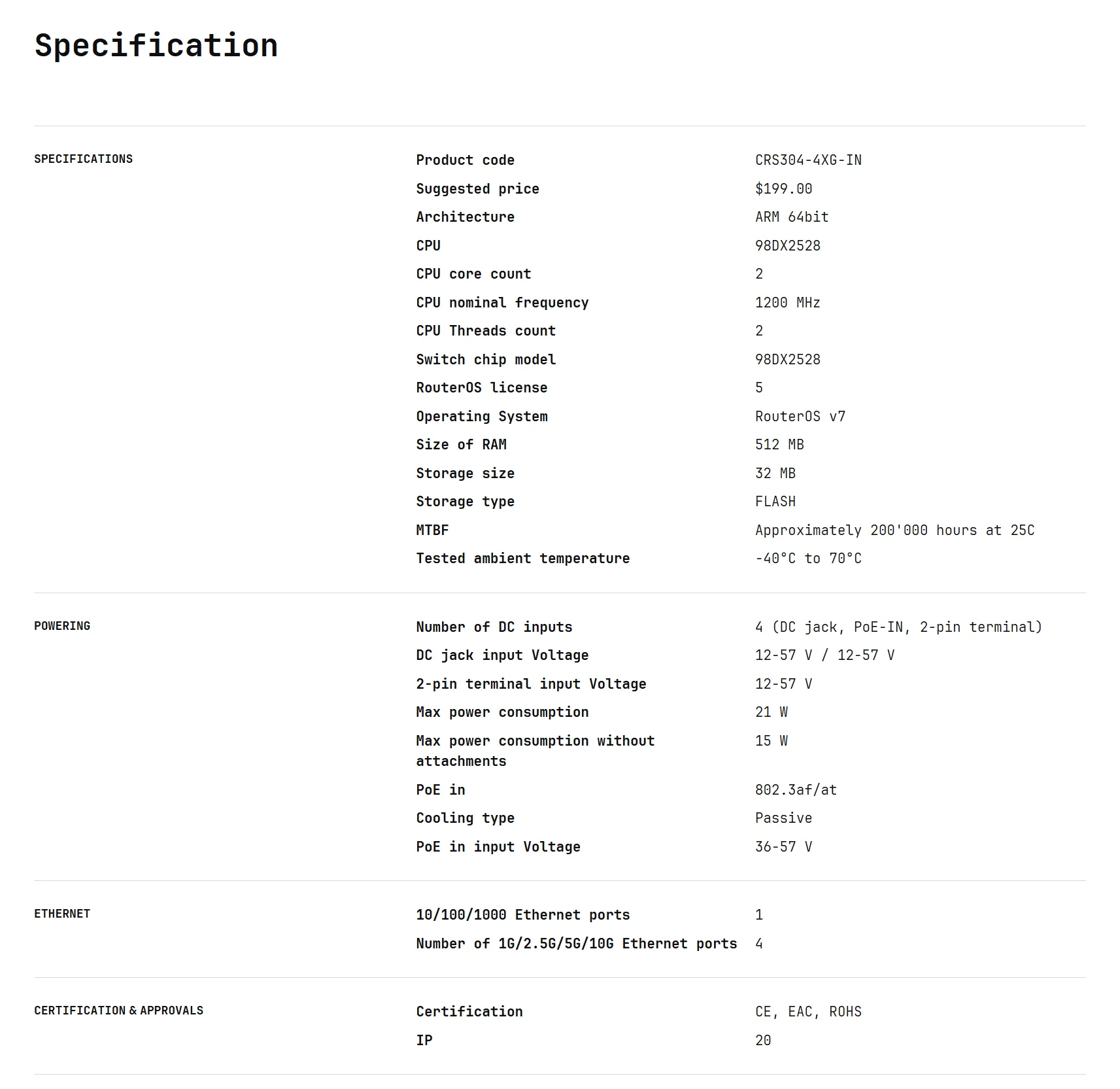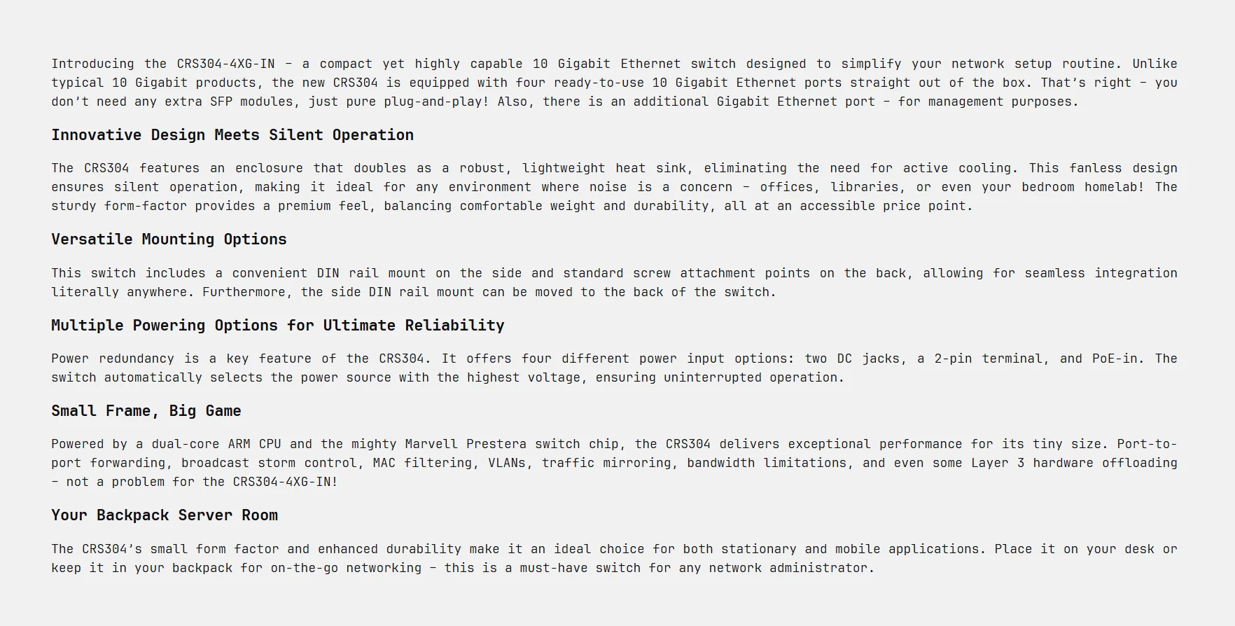 MikroTik CRS304-4XG-IN Switch Compact, Powerful, 10 Gigabit Network Setups with 4x10G Ethernet Ports