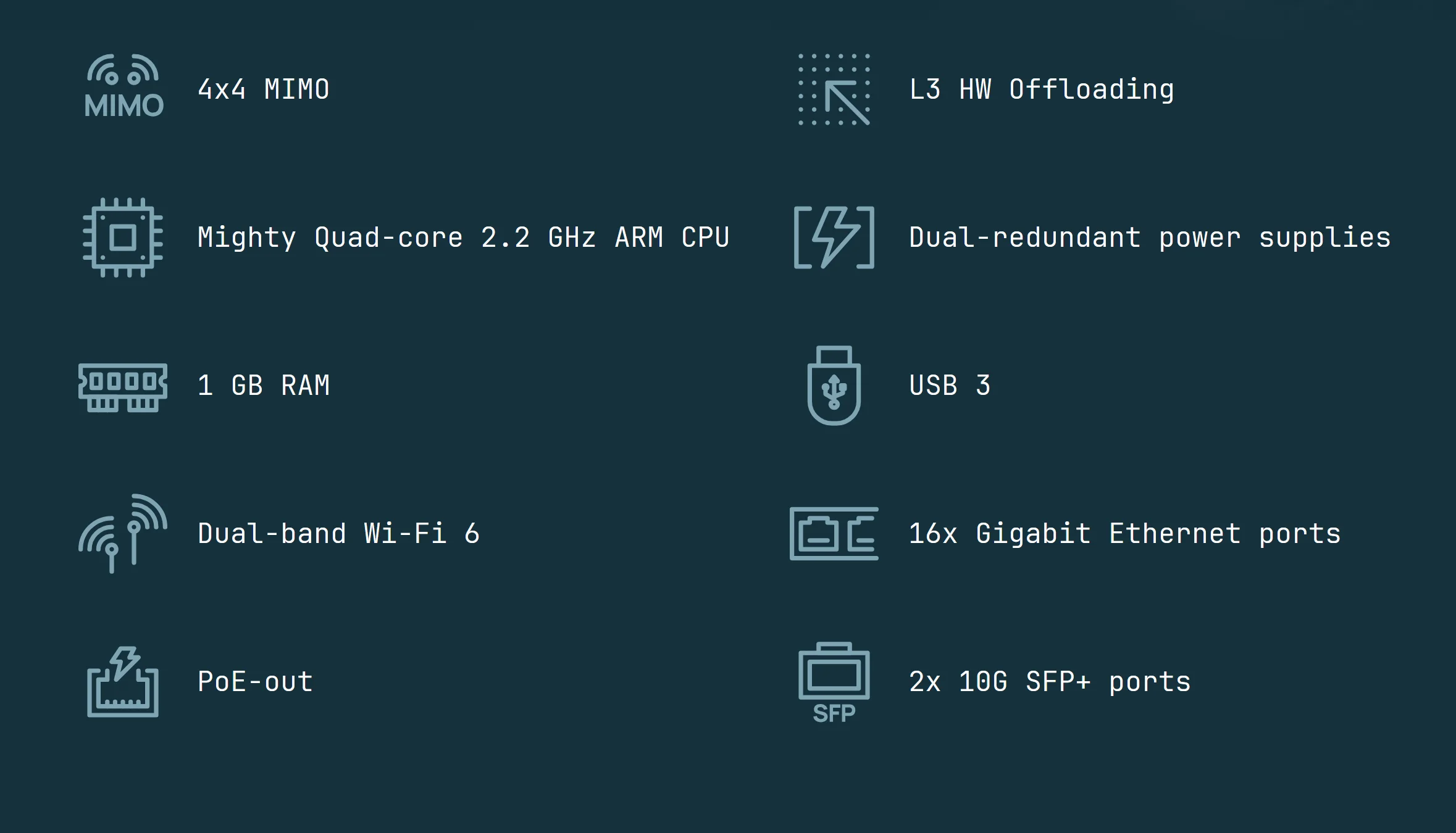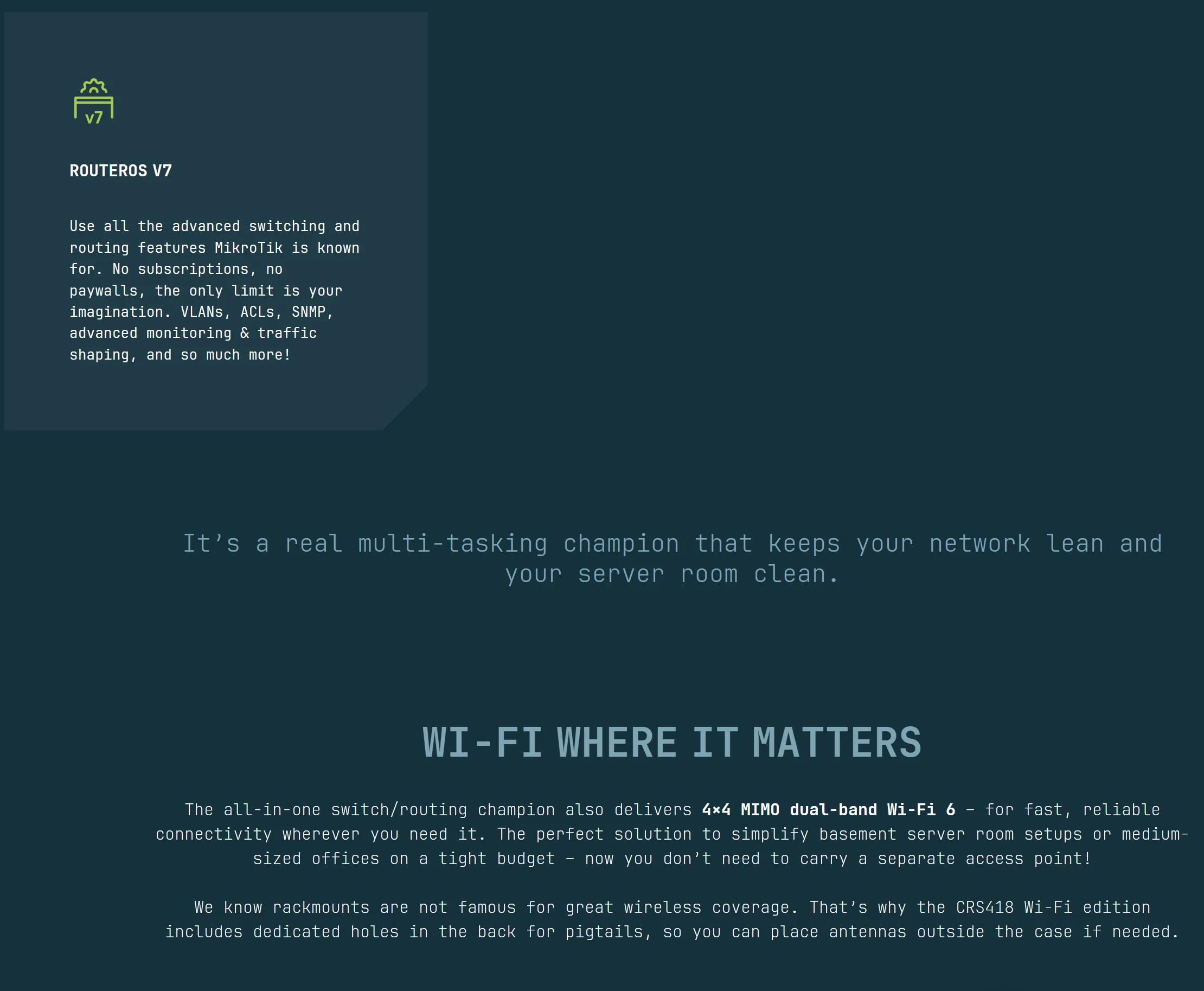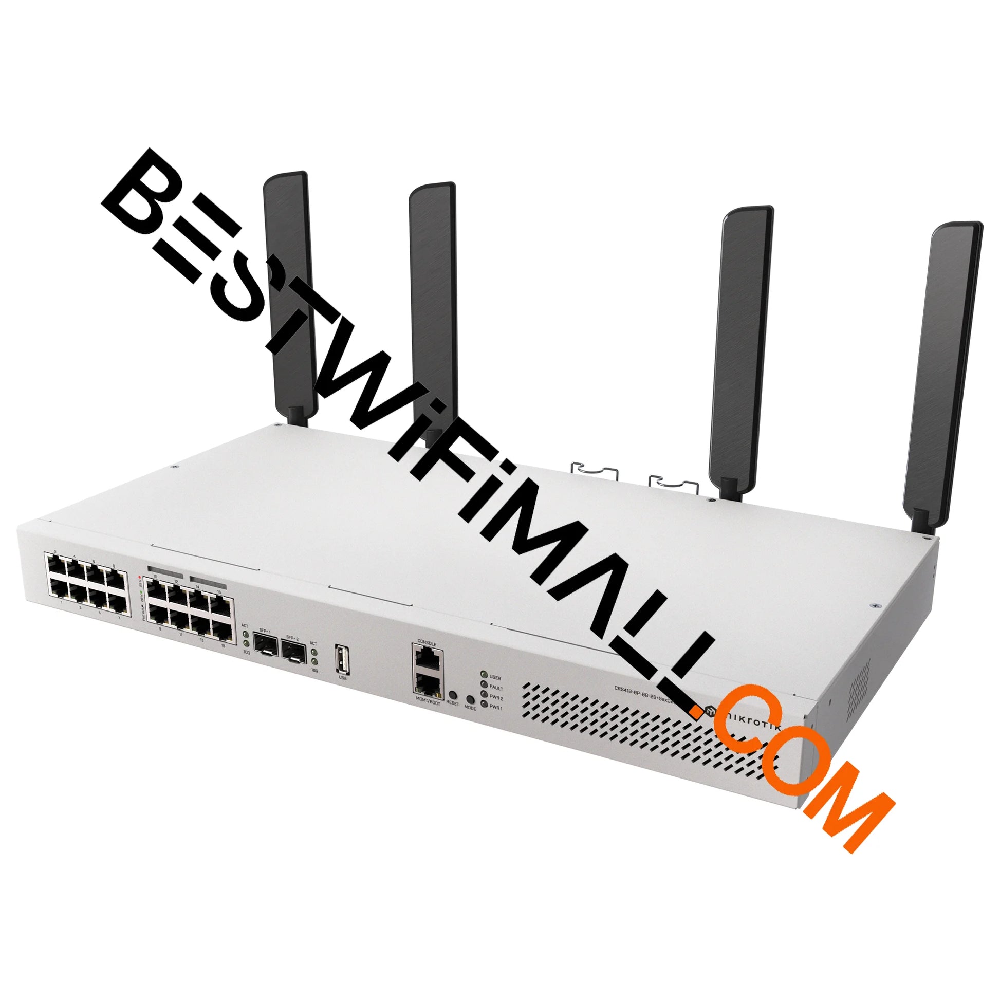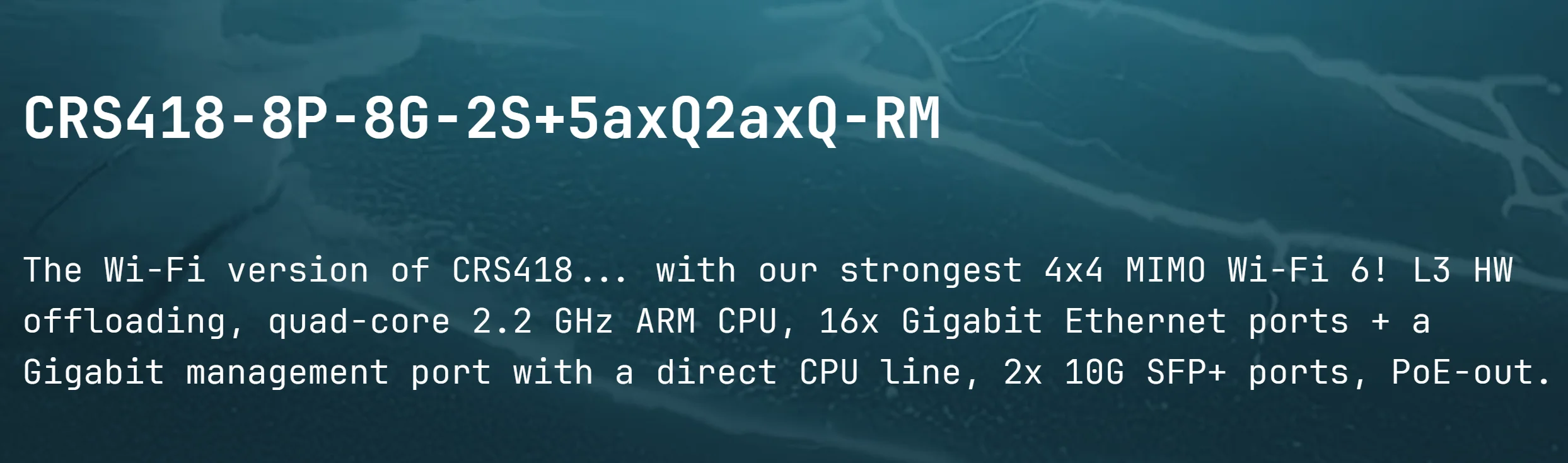 MikroTik CRS418-8P-8G-2S+5axQ2axQ-RM Wi-Fi Router 4x4 MIMO Wi-Fi 6, L3 HW Offloading, Quad-core 2.2 GHz ARM CPU, 16x Gigabit