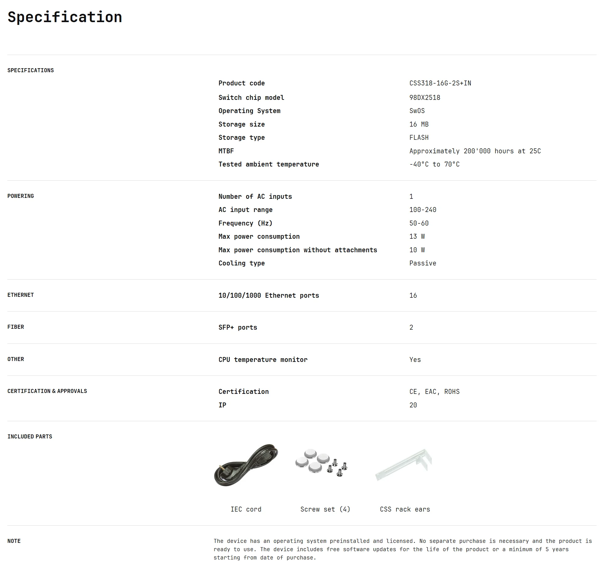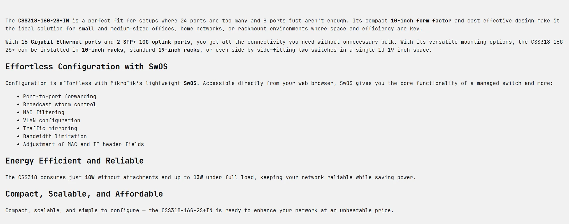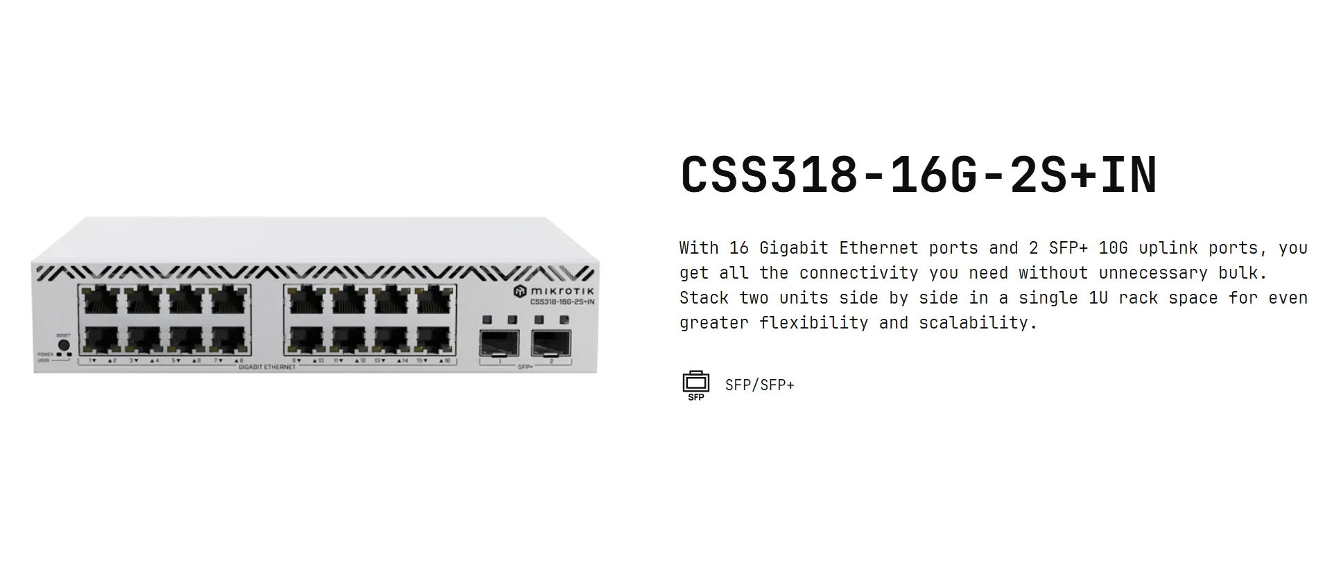 MikroTik CSS318-16G-2S+IN Switch 16 Gigabit Ethernet Ports and 2 SFP+ 10G Uplink Ports
