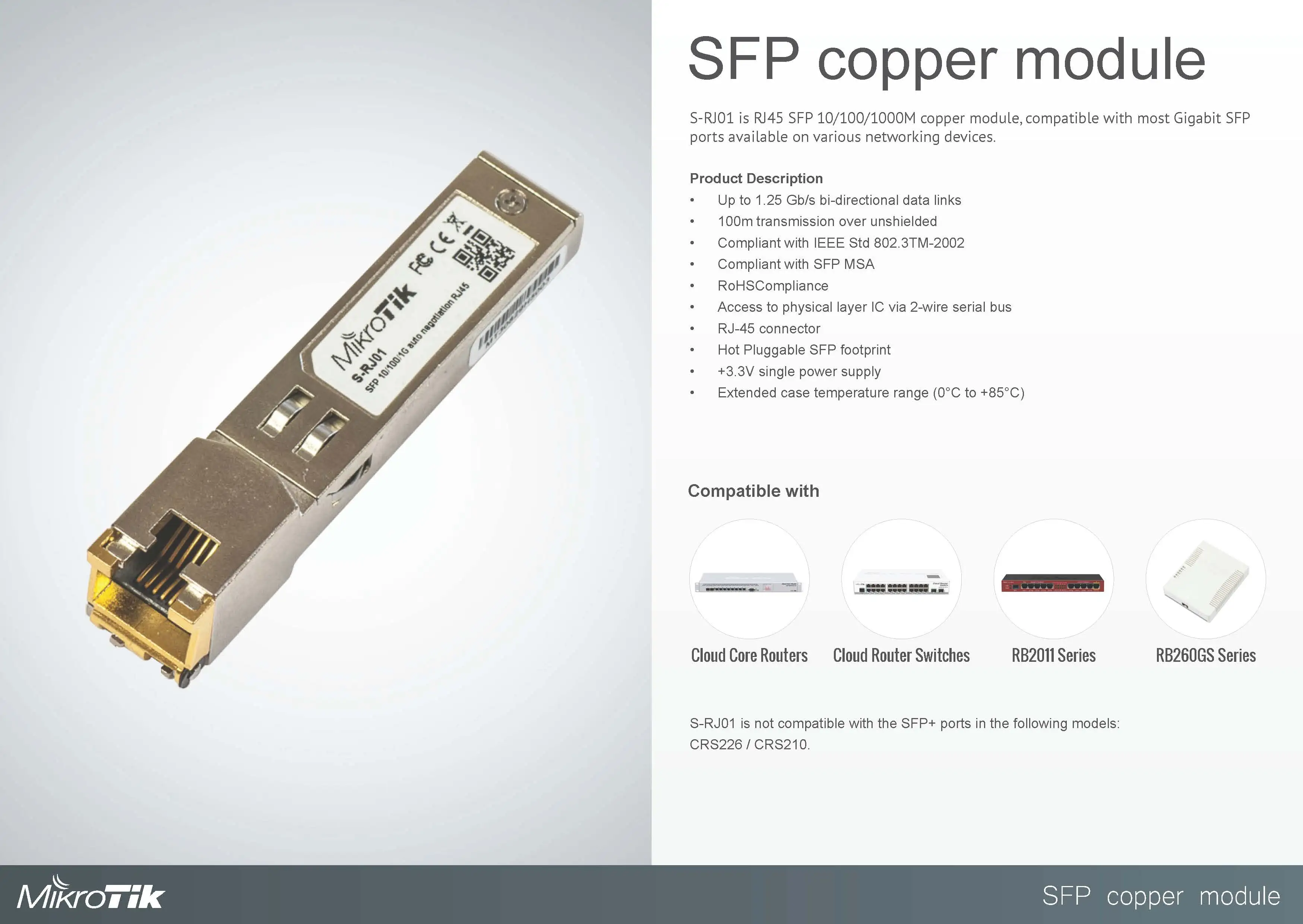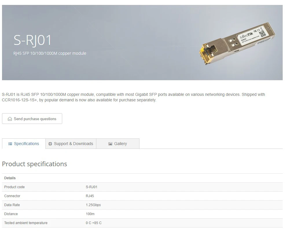 MikroTik S-RJ01 RJ45 SFP 10/100/1000M Copper Module Compatible With Most Gigabit SFP Ports Available On Various Networking 1PCS