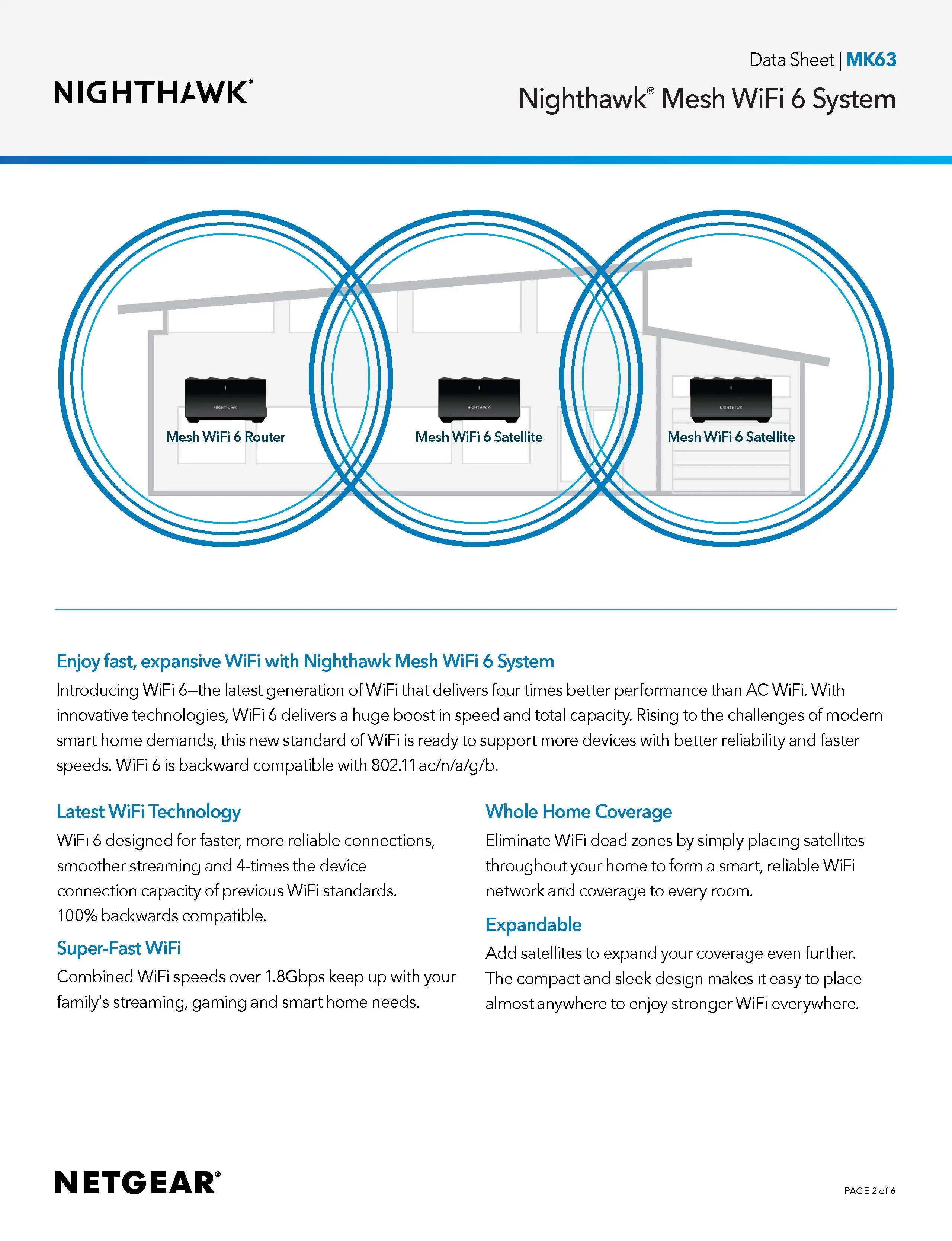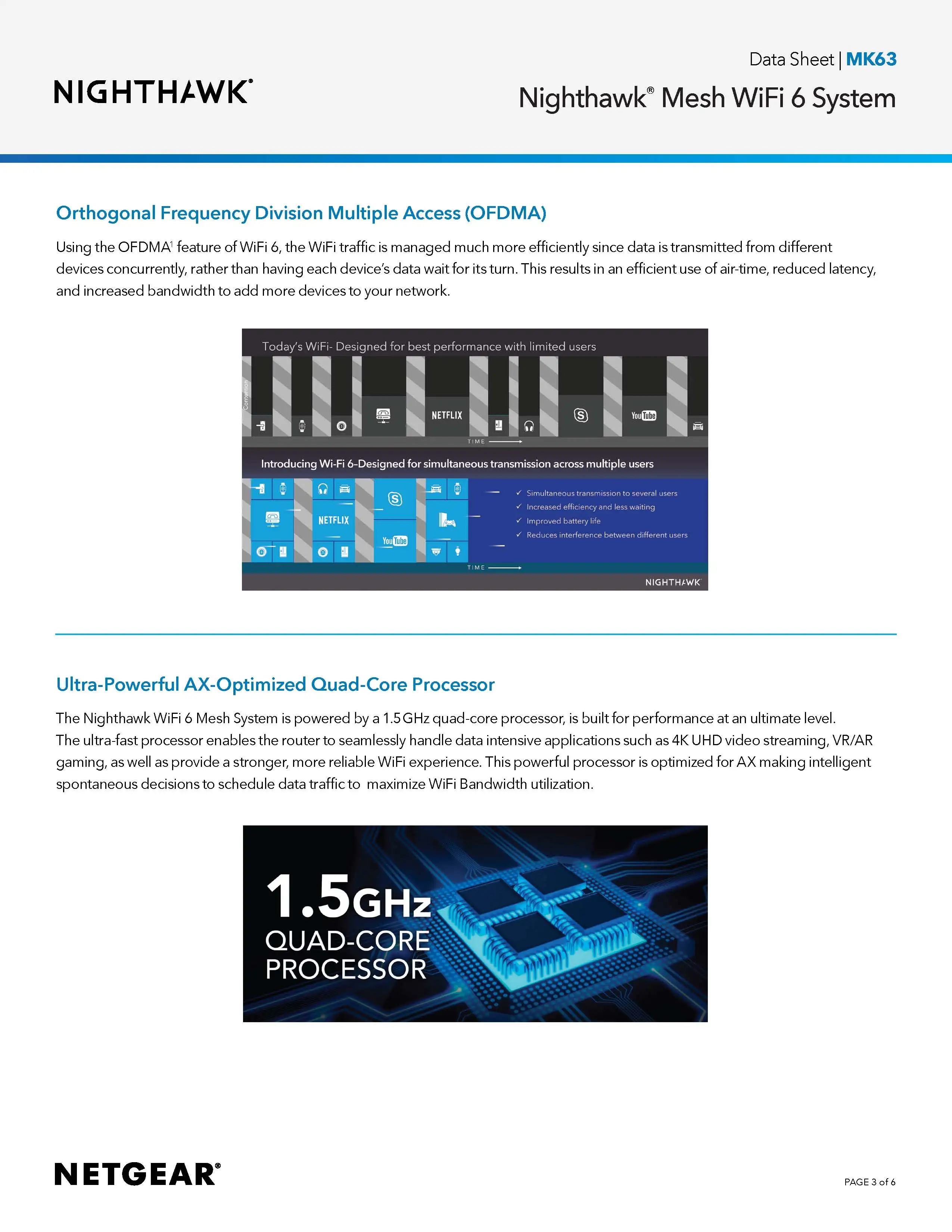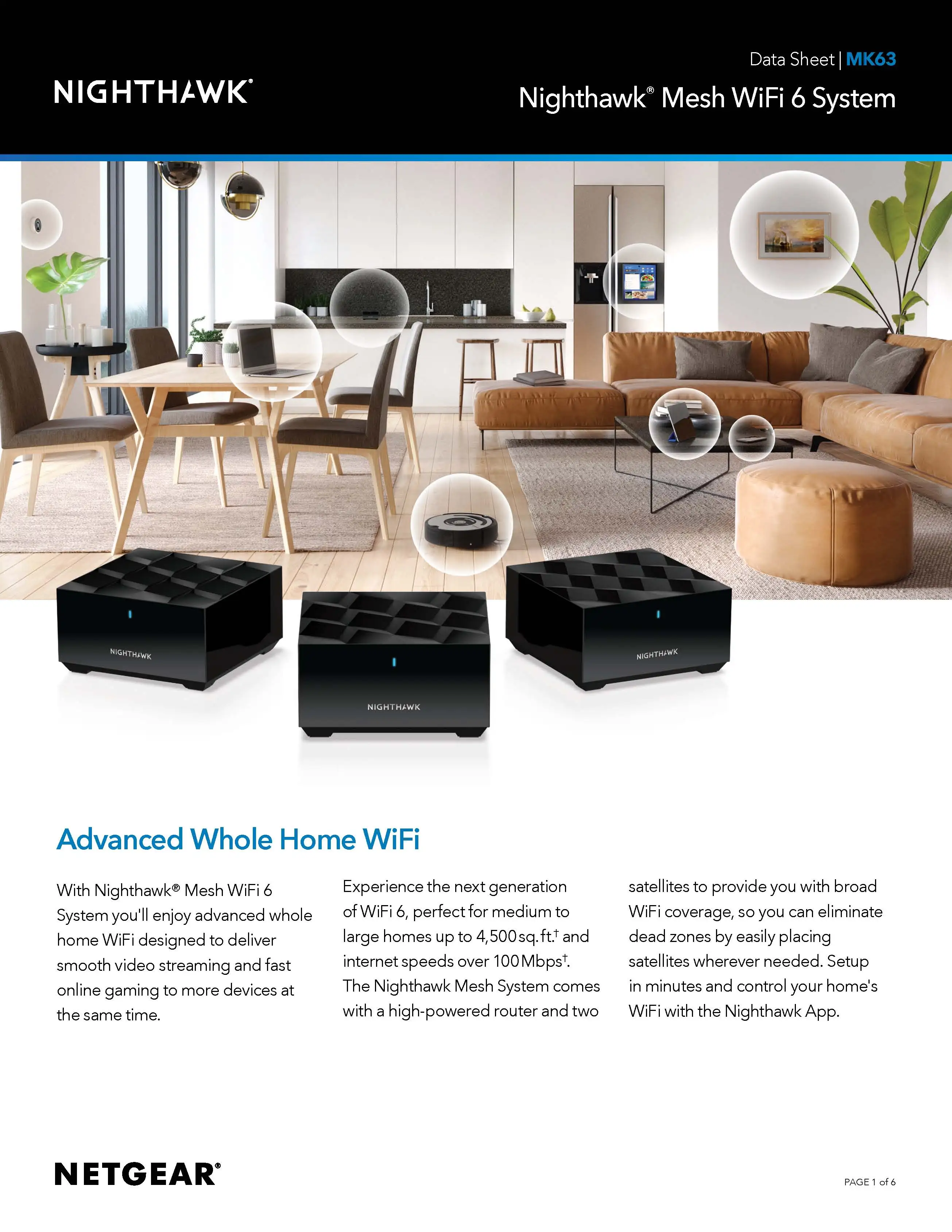 NETGEAR MK63 3-Packs Nighthawk Dual-band AX1800 MU-MIMO 1.8Gbps 1 Router+2 Satellite WiFi 6 Mesh Router,WiFi Coverage 3,000sq.ft