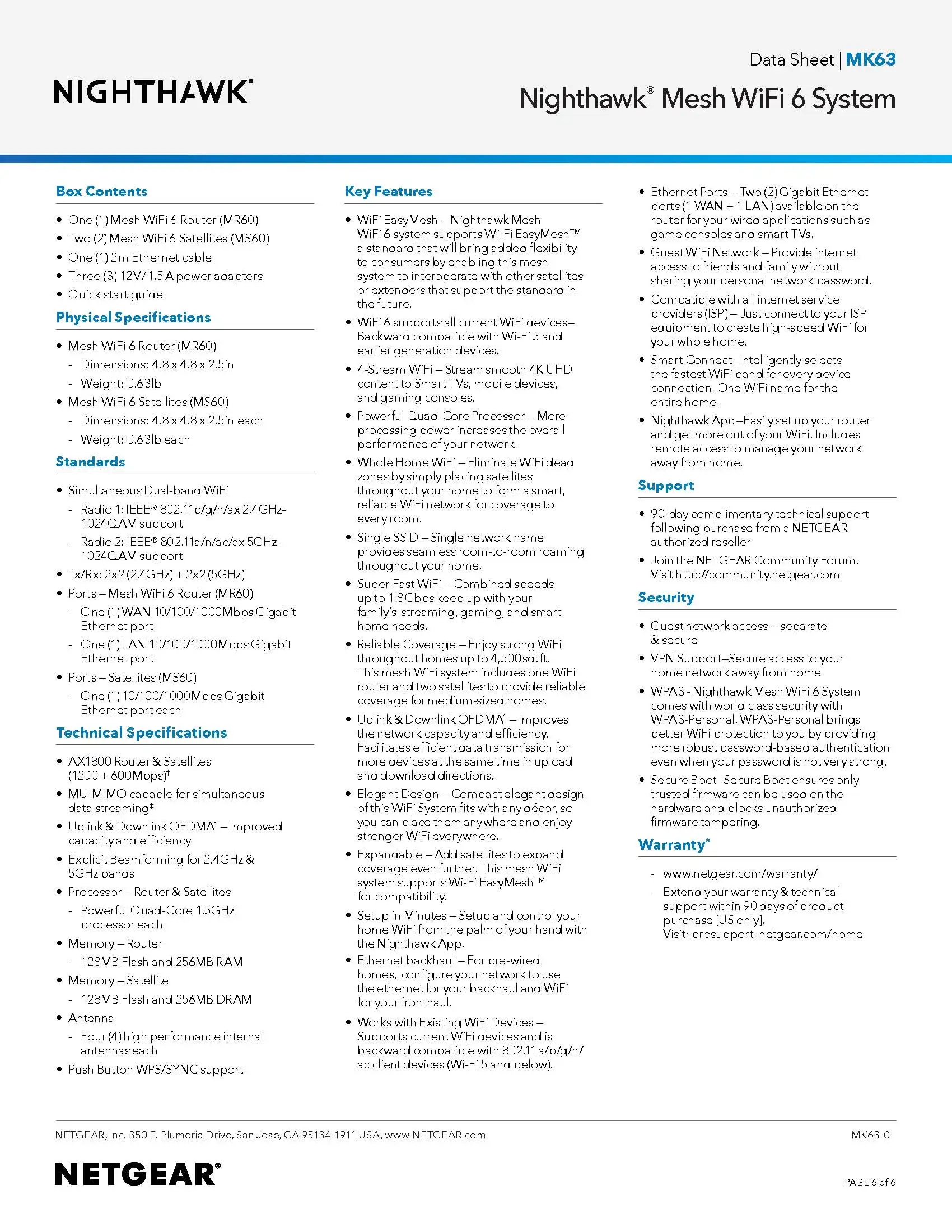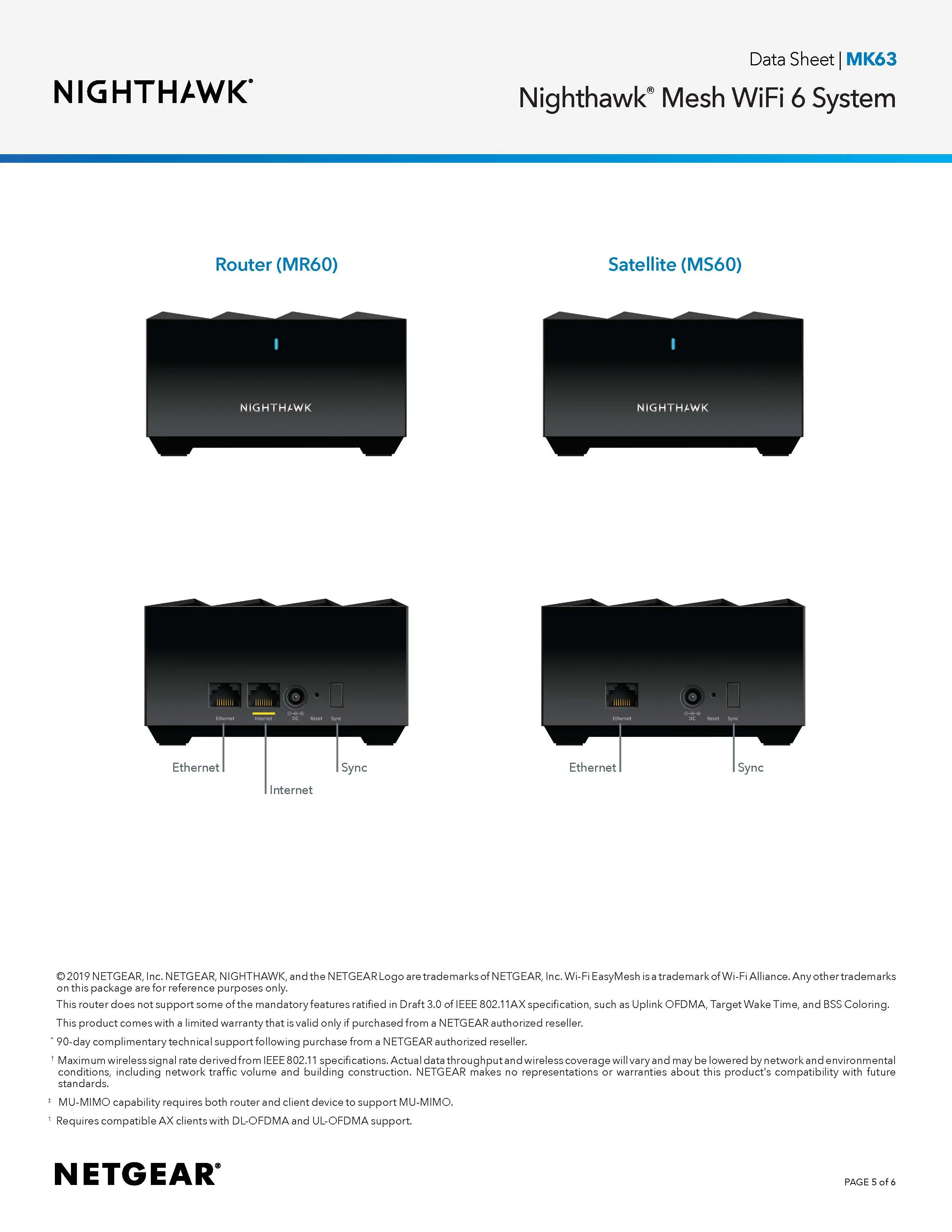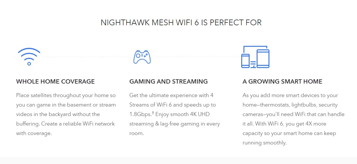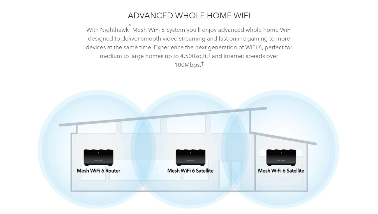NETGEAR MK63 3-Packs Nighthawk Dual-band AX1800 MU-MIMO 1.8Gbps 1 Router+2 Satellite WiFi 6 Mesh Router,WiFi Coverage 3,000sq.ft