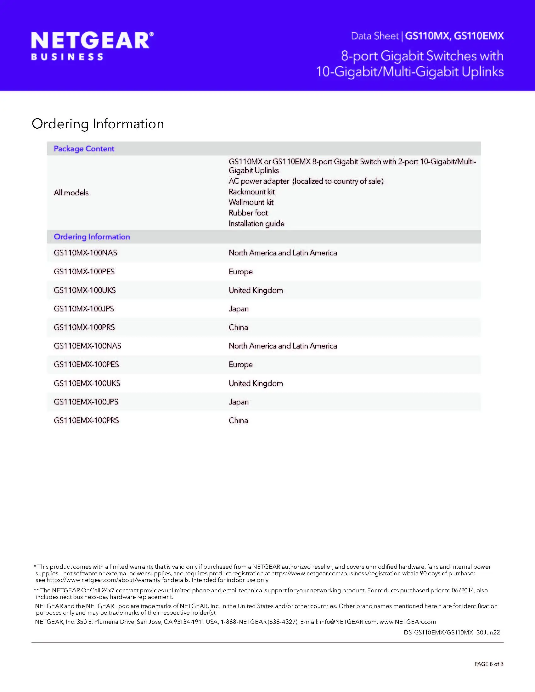 NETGEAR 8-Port Gigabit Ethernet Plus (GS110EMX)