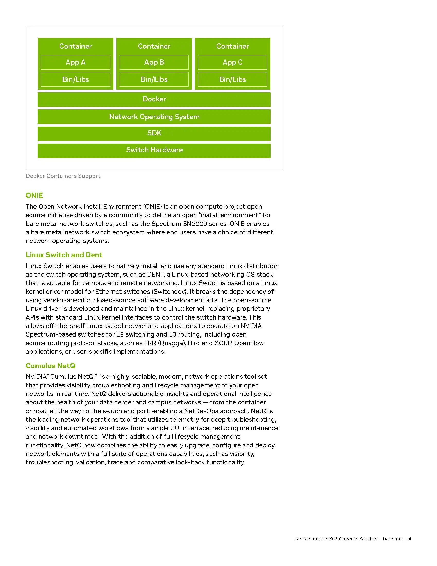 Powered by the Spectrum ASIC and packed with 8 ports running at 100GbE (can be split to 16 ports running 50GbE) and 48 ports running at 25GbE, the SN2410 carries a whopping throughput of 4Tb/s with a landmark 2.97Bpps processing capacity in a compact 1RU form factor.