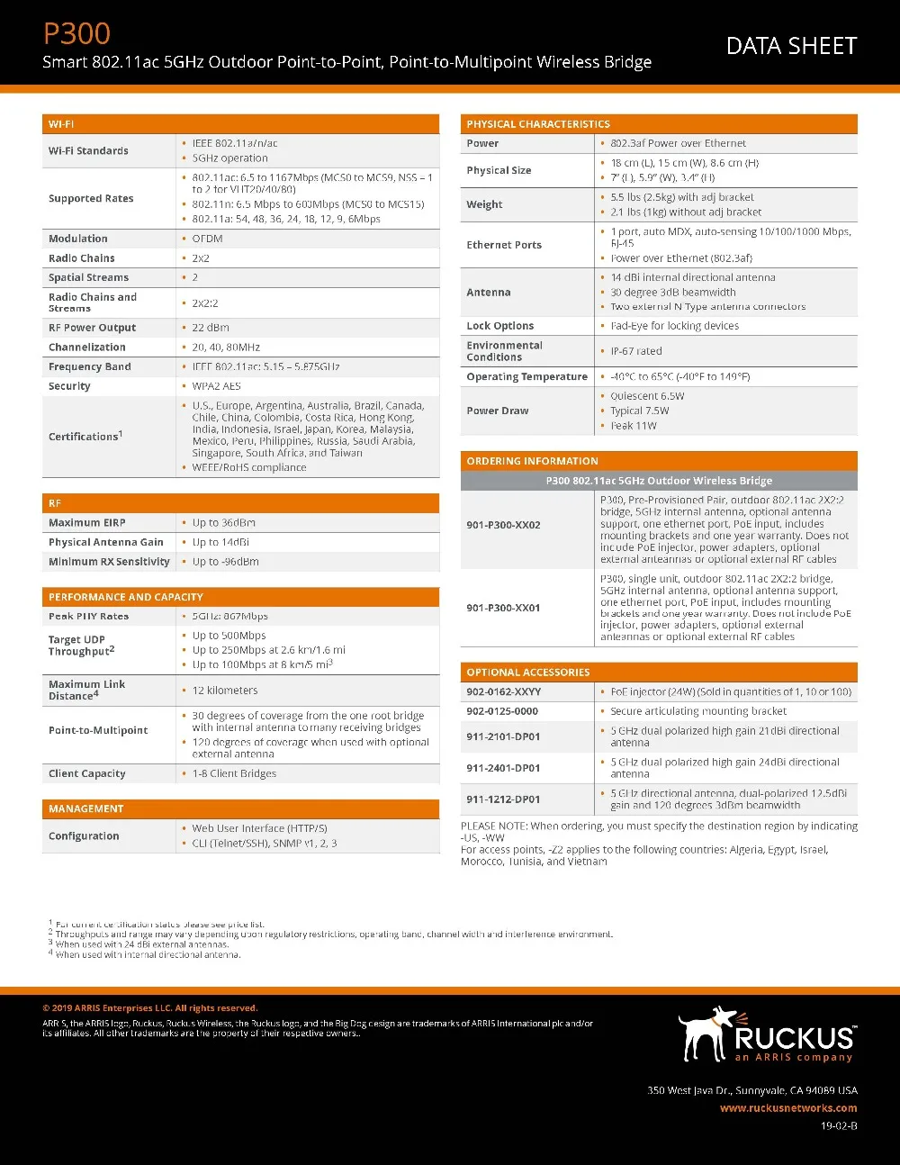 Ruckus Wireless P300 901-P300-WW02 901-P300-EU02 901-P300-US02 Outdoor Wireless Bridge Access Point 802.11ac 5GHz 1 Unit/PCS
