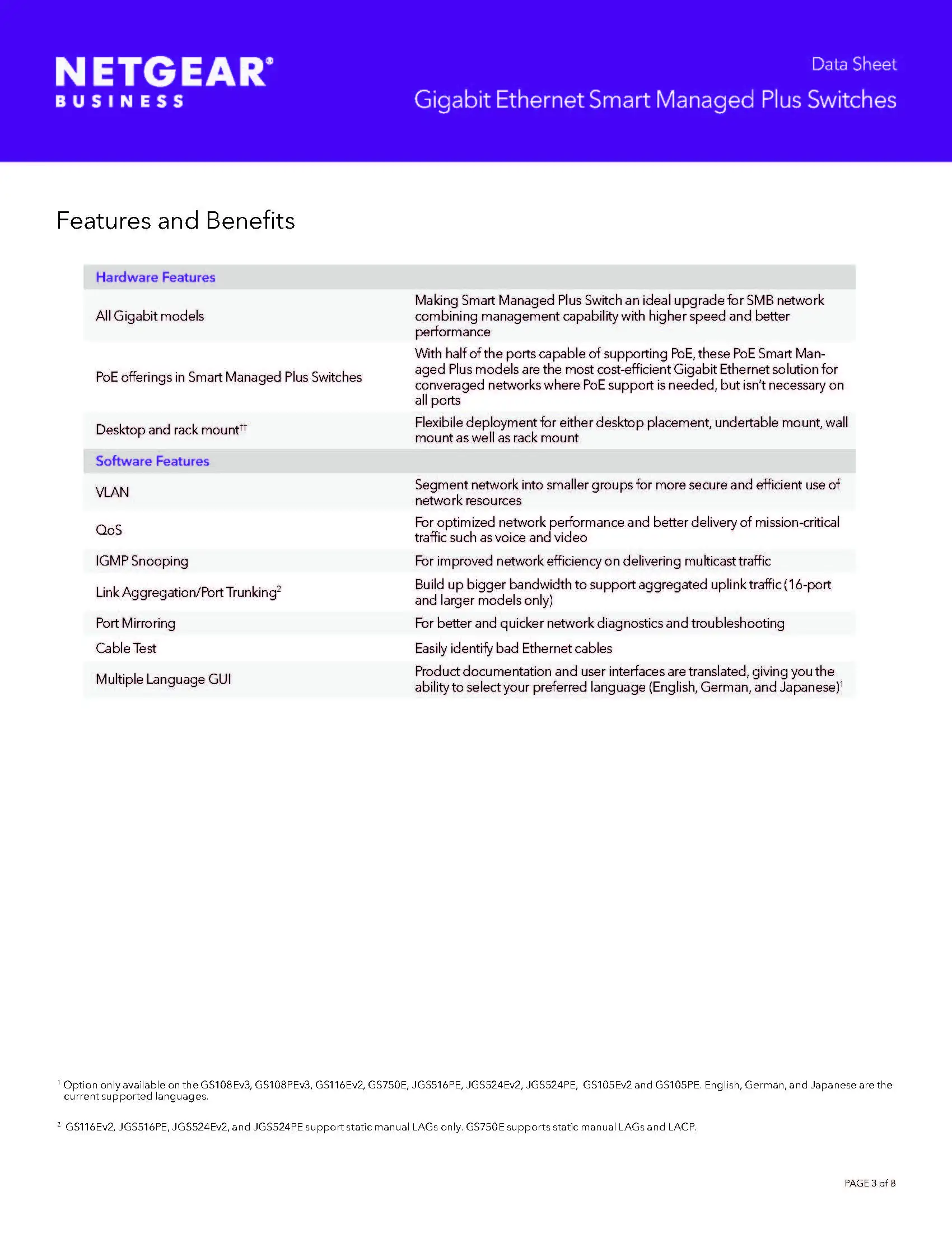 NETGEAR JGS516PE ProSafe Plus Ethernet Switch 16 Ports 8xPOE 8xRJ-45 10/100/1000Base-T Desktop