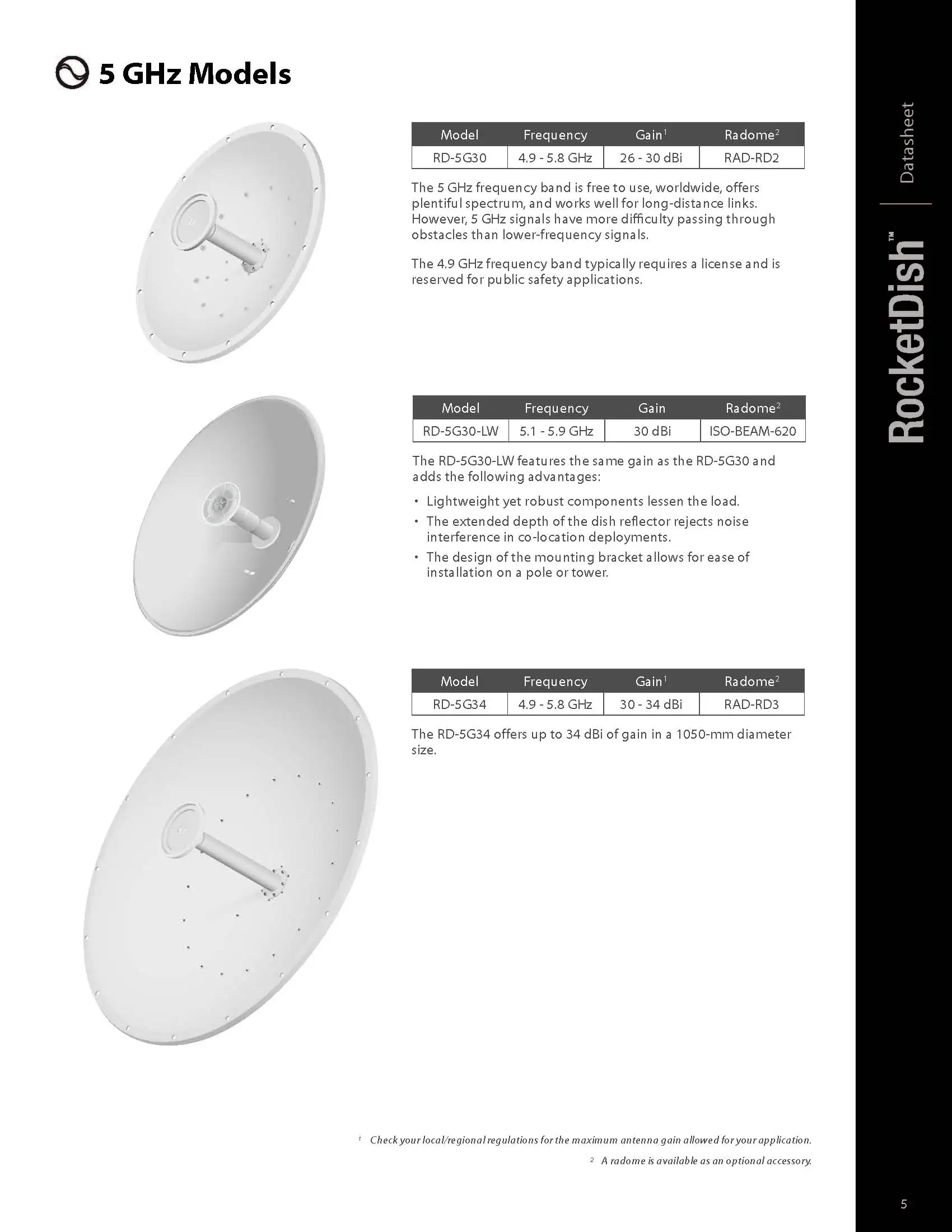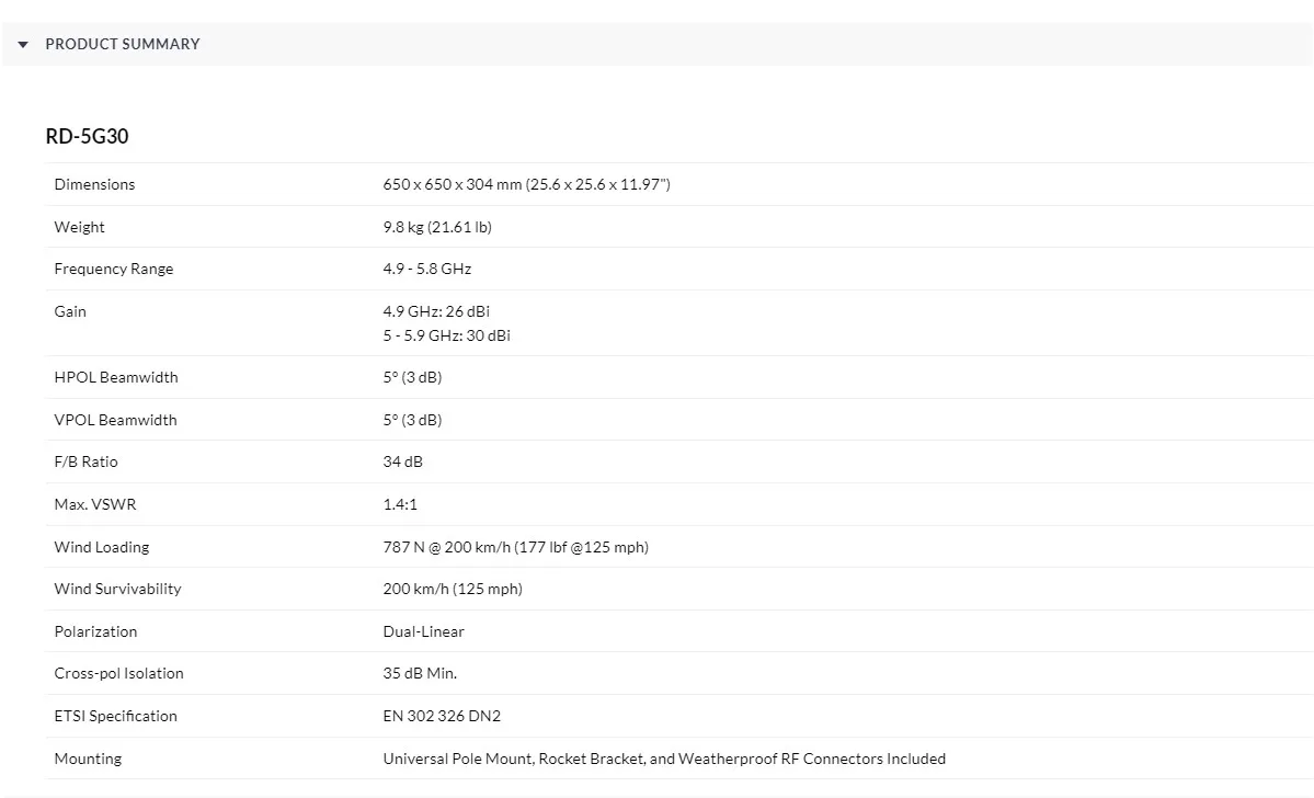 UBIQUITI RD-5G30 UISP 5 GHz airMAX 30 dBi RocketDish Antenna 2x2 PtP Bridge Dish Antenna BaseStation for Point‑to‑Point