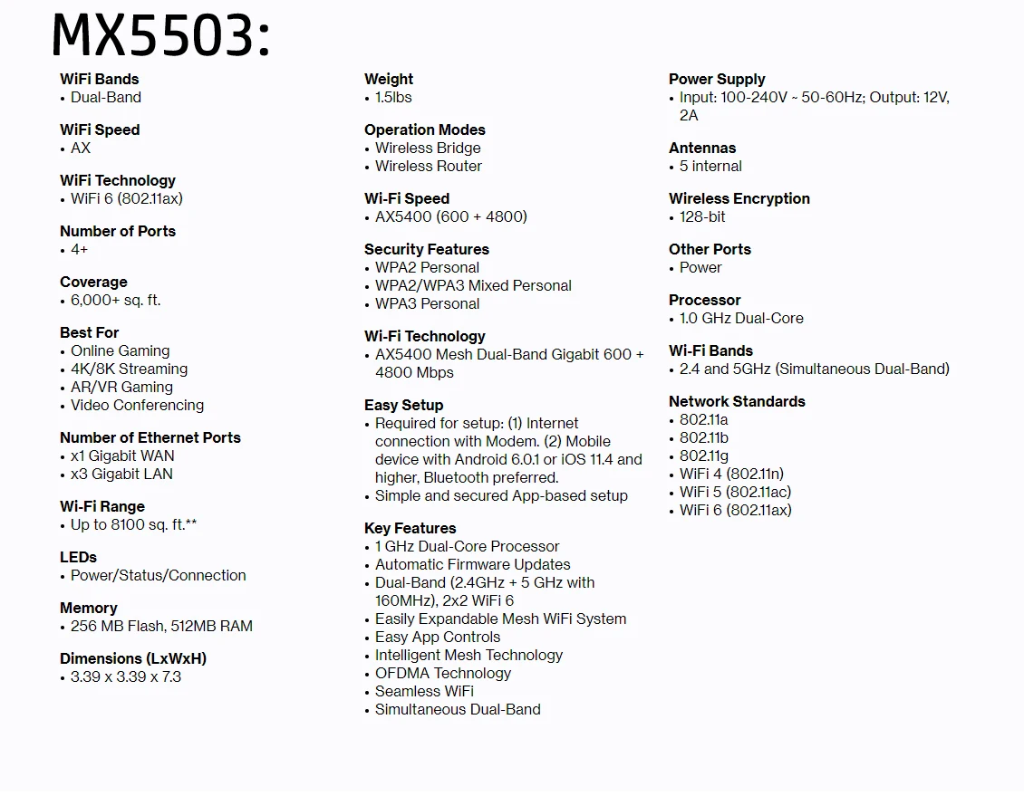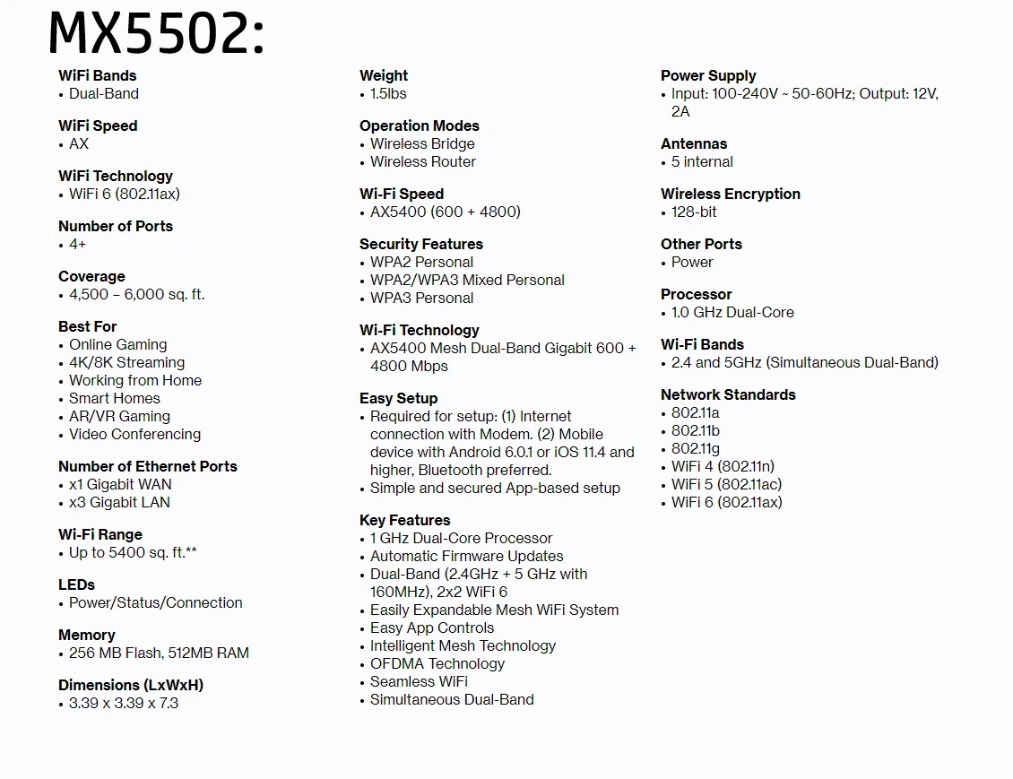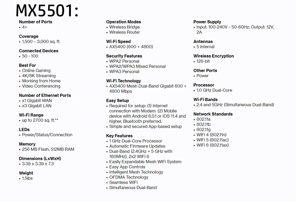 LINKSYS MX5501 MX5502 MX5503 Atlas Pro 6 AX5400 Whole Home Intelligent Mesh Network Dual-Band WiFi 6 Router