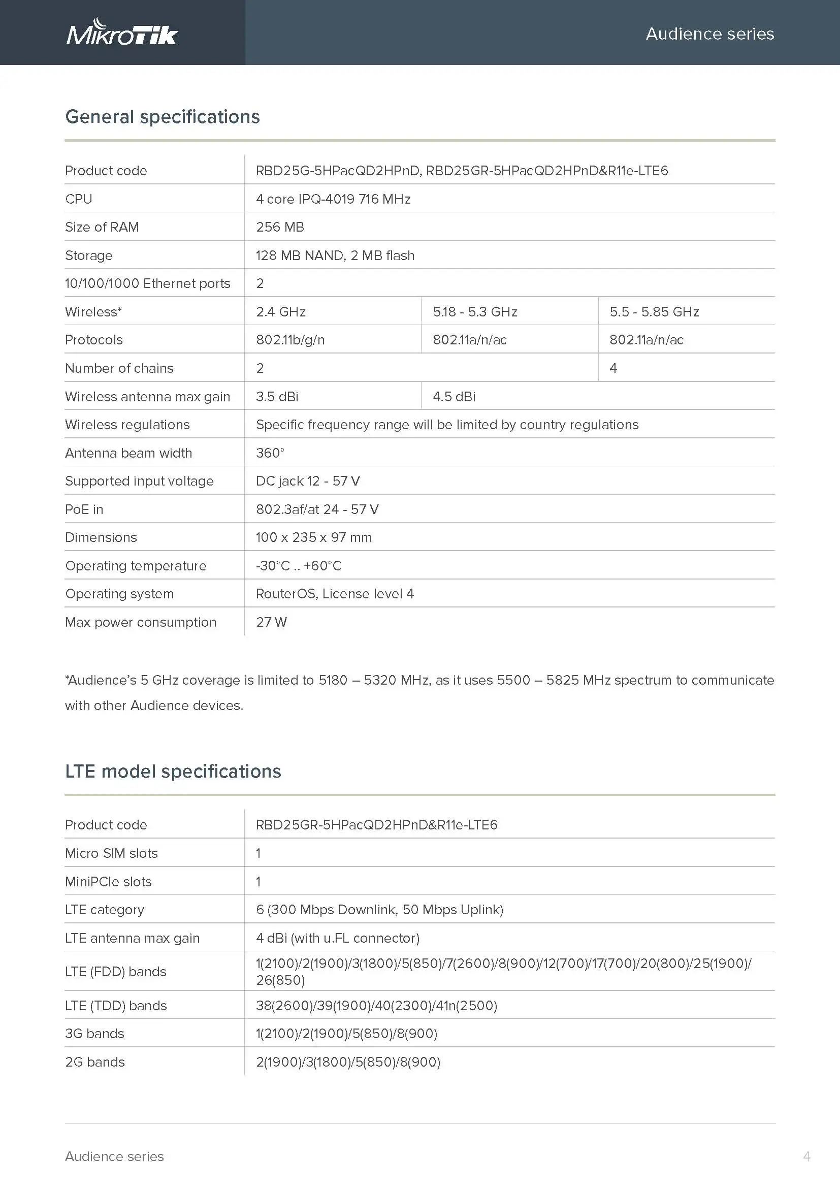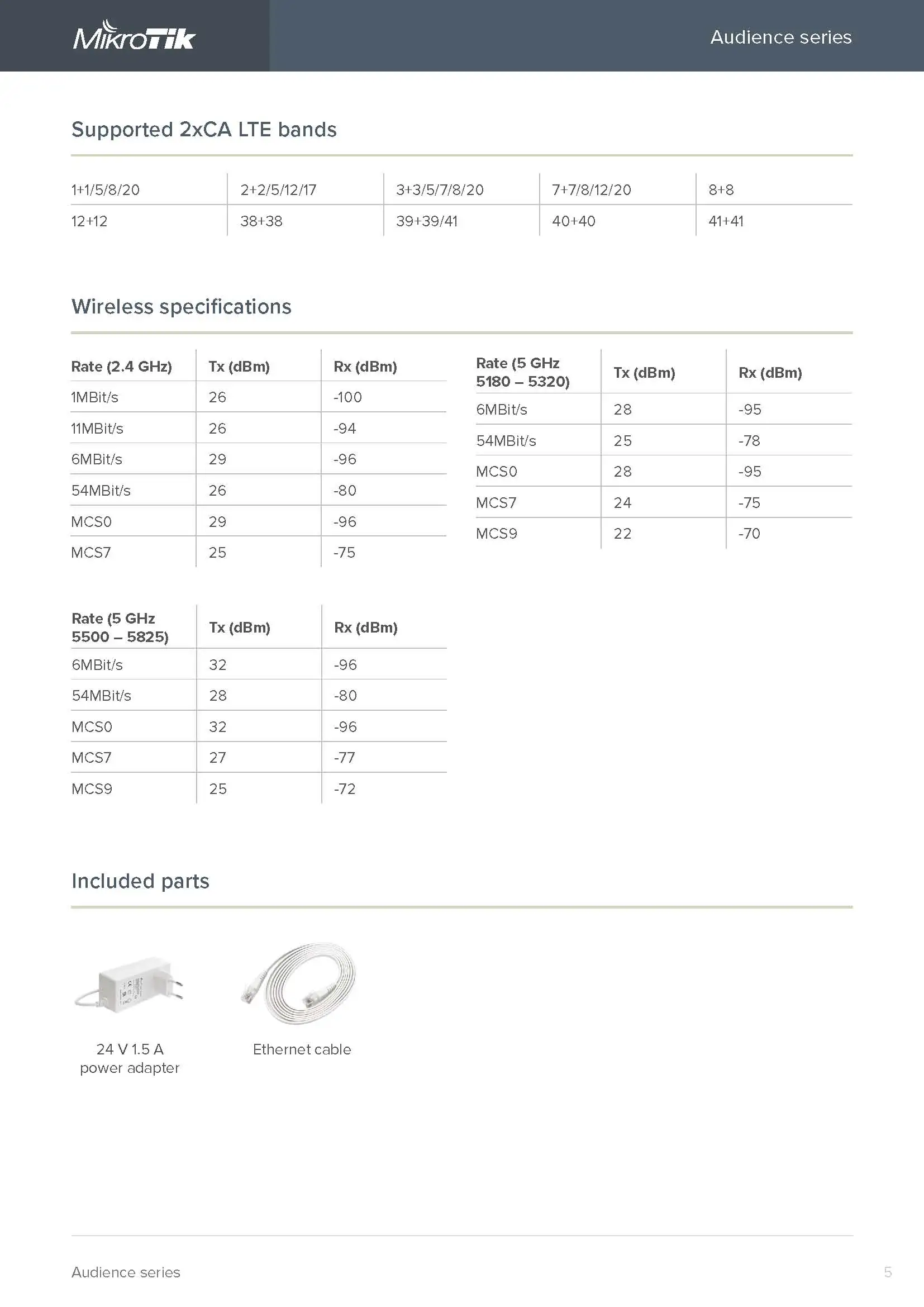 Audience is a tri-band (one 2.4 GHz & two 5 GHz) home access point with meshing technology. If you need Wi-Fi in a huge building with all kinds of obstacles, simply add more Audience devices to your network – with a press of a button they will sync seamlessly and create a single Wi-Fi network to cover the whole premises. The initial setup is also very simple – download the iOS or Android MikroTik app, it will connect to the router and guide you through a quick setup process.