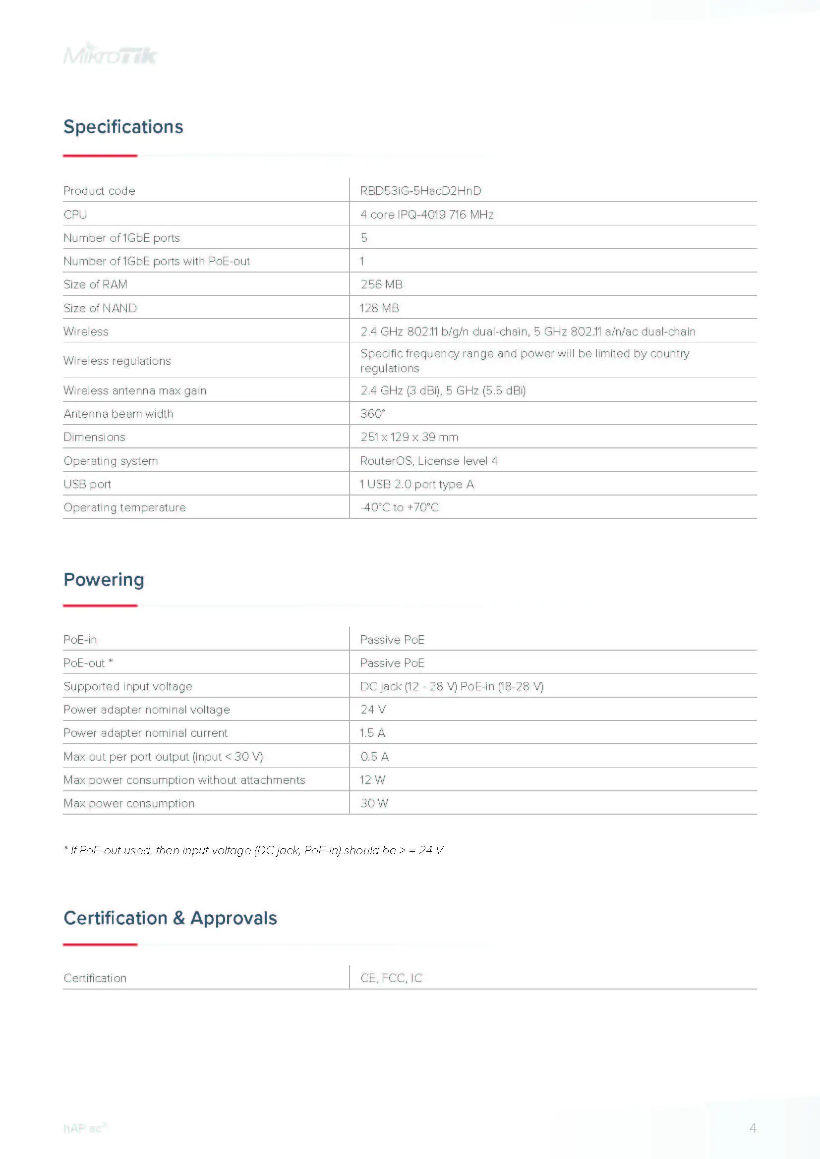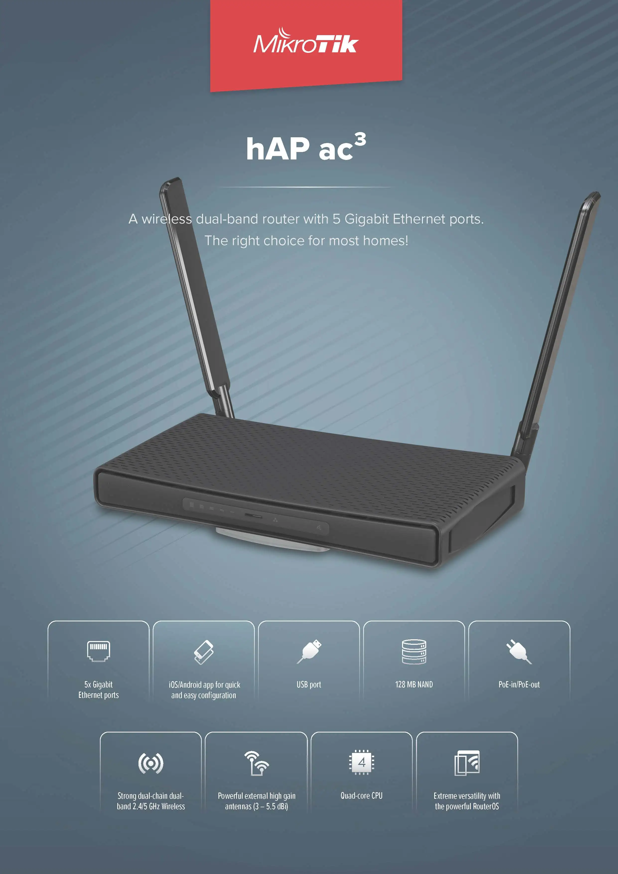MikroTik RBD53iG-5HacD2HnD Dual Band Wi-Fi Router hAP ROS Ac3 AC1200 Gigabit 802.11AC WiFi 5 Wireless 5x1000Mbps Ports