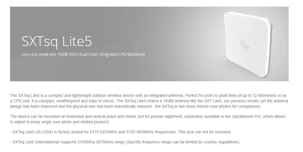 MikroTik RBSXTsq5nD Outdoor WiFi AP Wireless Bridge Access Point SXTsq Lite5 Low-cost small-size 16dBi 5GHz dual chain integrated CPE