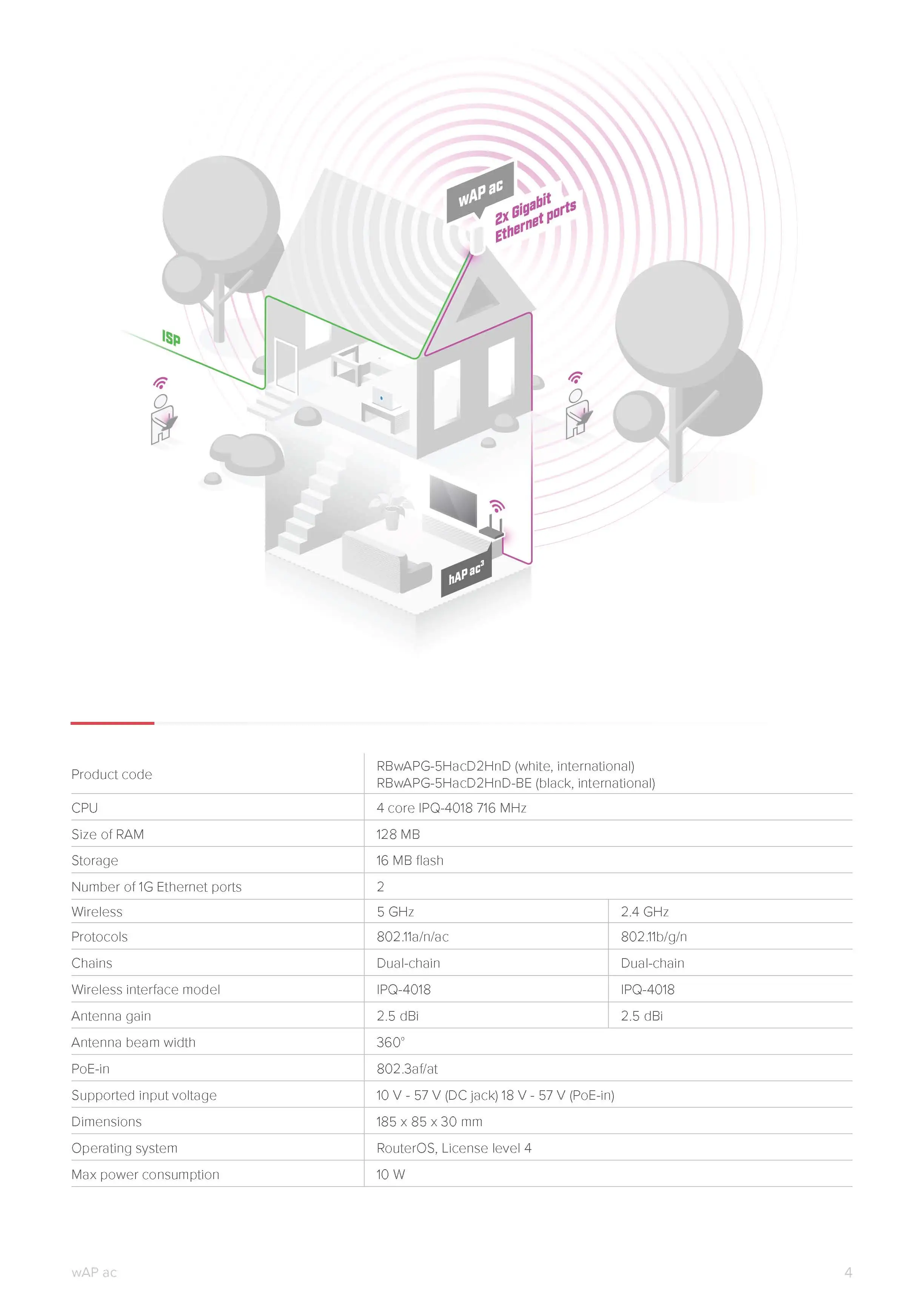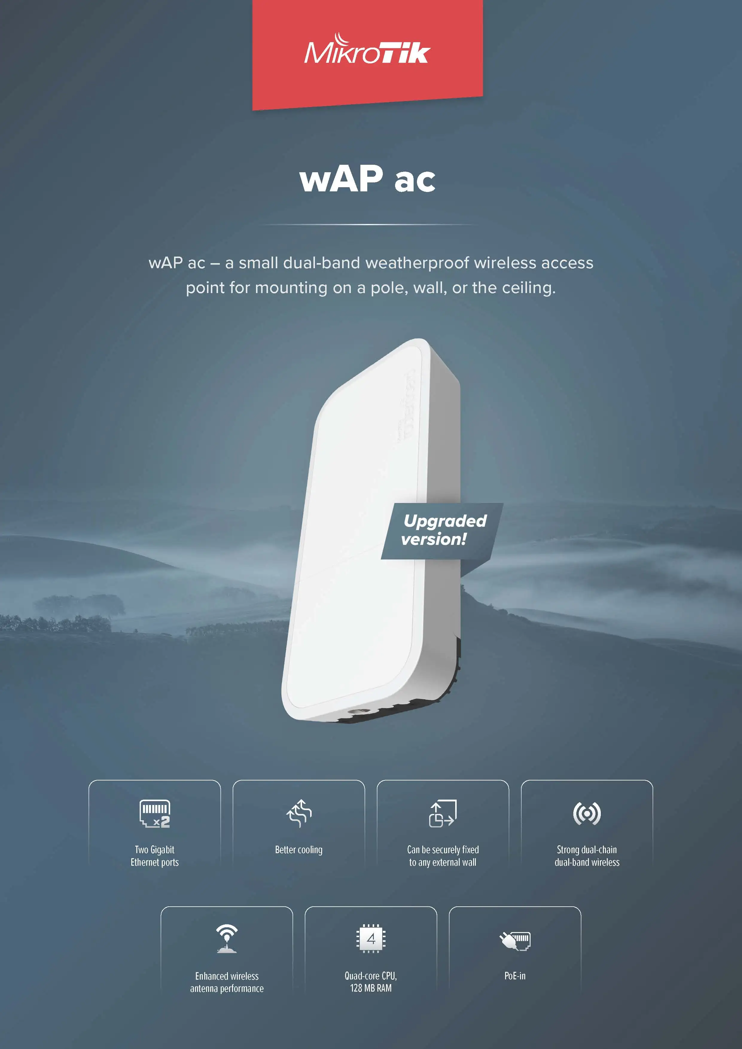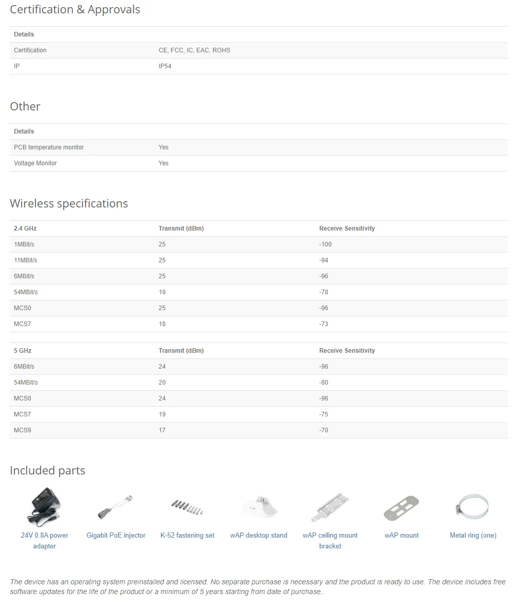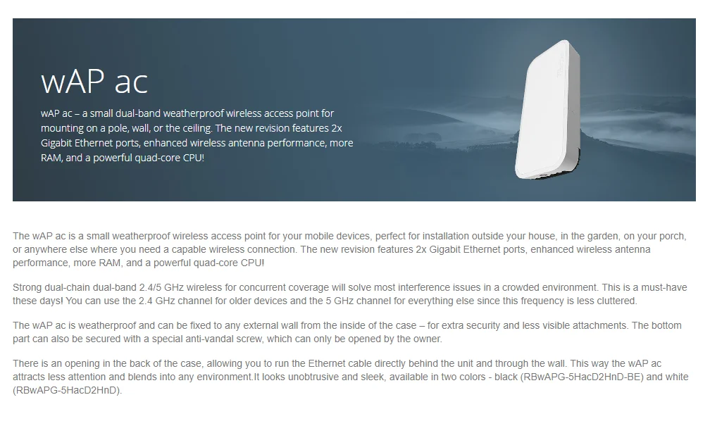 MikroTik RBwAPG-5HacD2HnD wAP AC1200 small dual-band weatherproof wireless access point Wi-Fi 5 2x10/100/1000 Ethernet ports