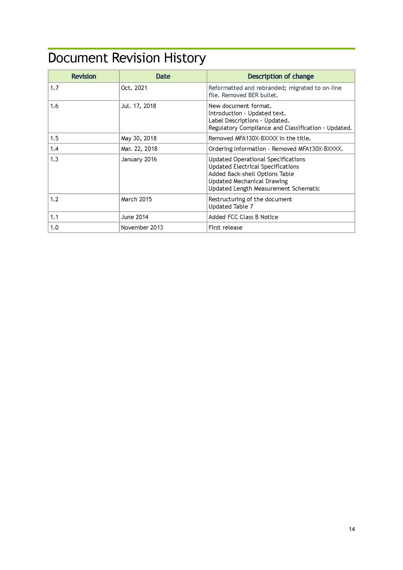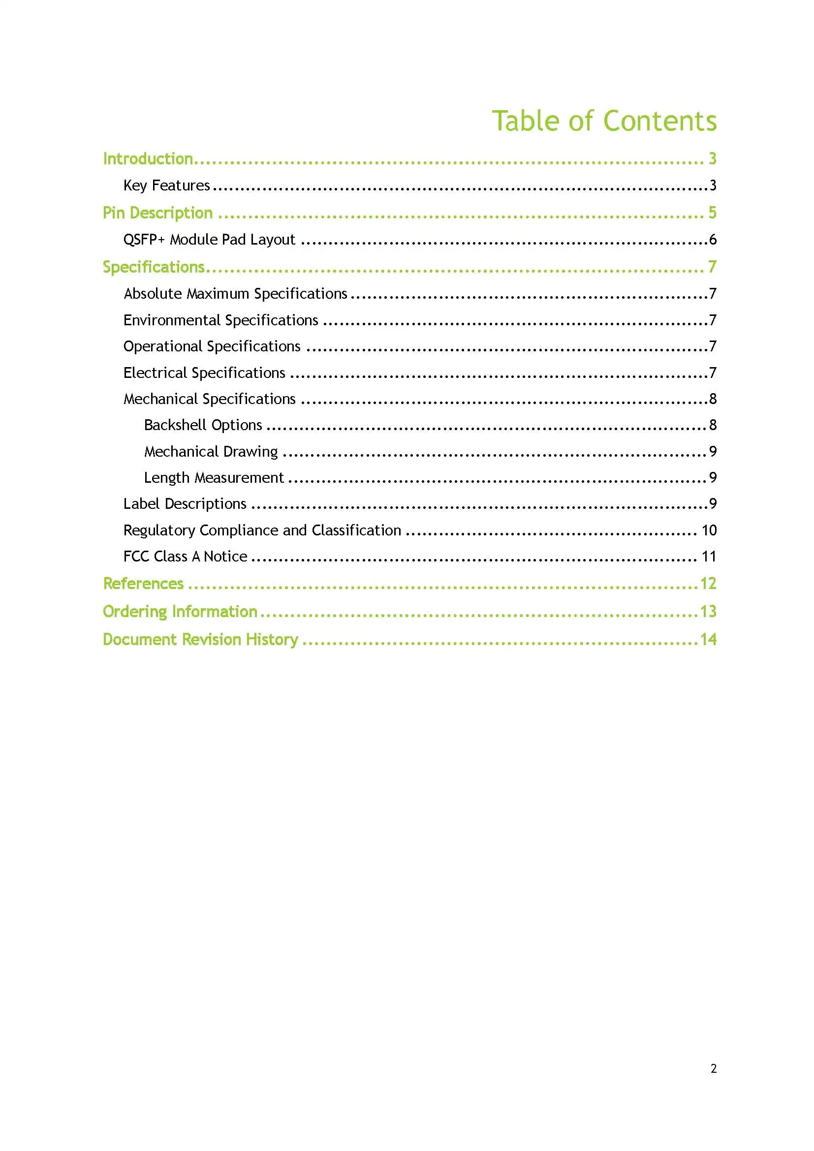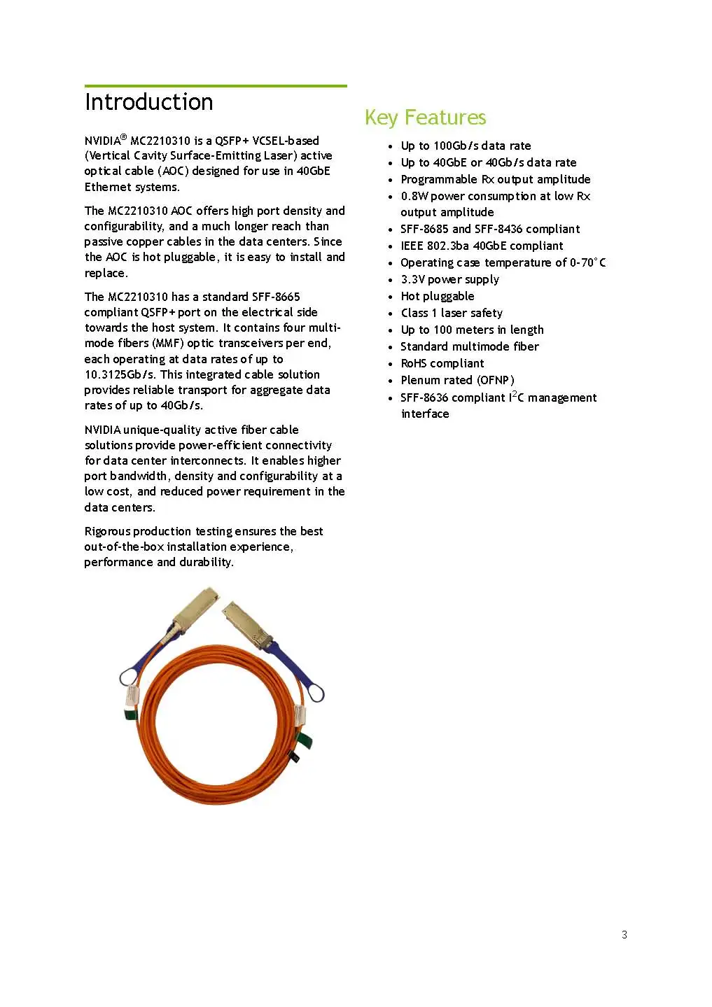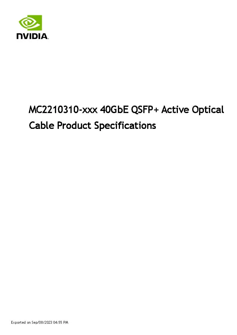 MC2210310-xxx 40GbE QSFP+ Active Optical Cable Product Specifications